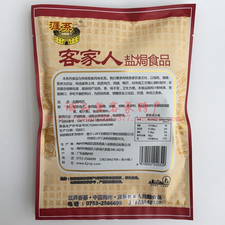 Meizhou Salt Chire Claw Guangdong Hakka родные продукты Hakka Chicket платный куриные особенности пакет Закуска