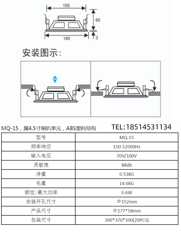 Nniaolin MQ-15 потолочный потолочный докладчик общественного вещания огня фон музыкальный аудио