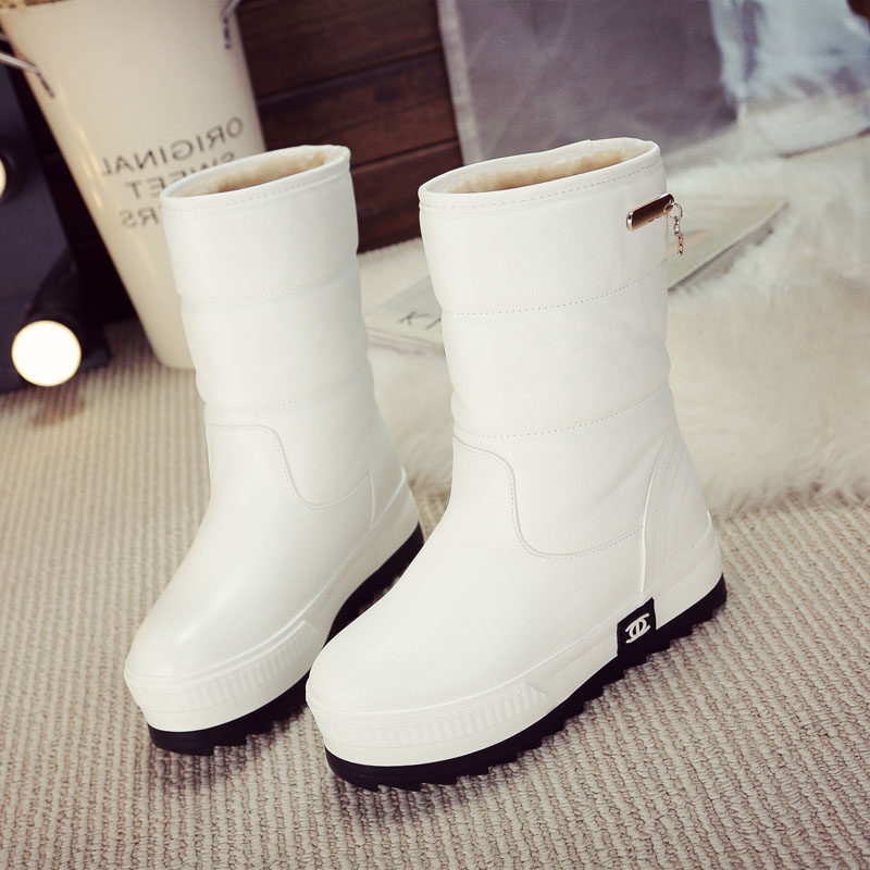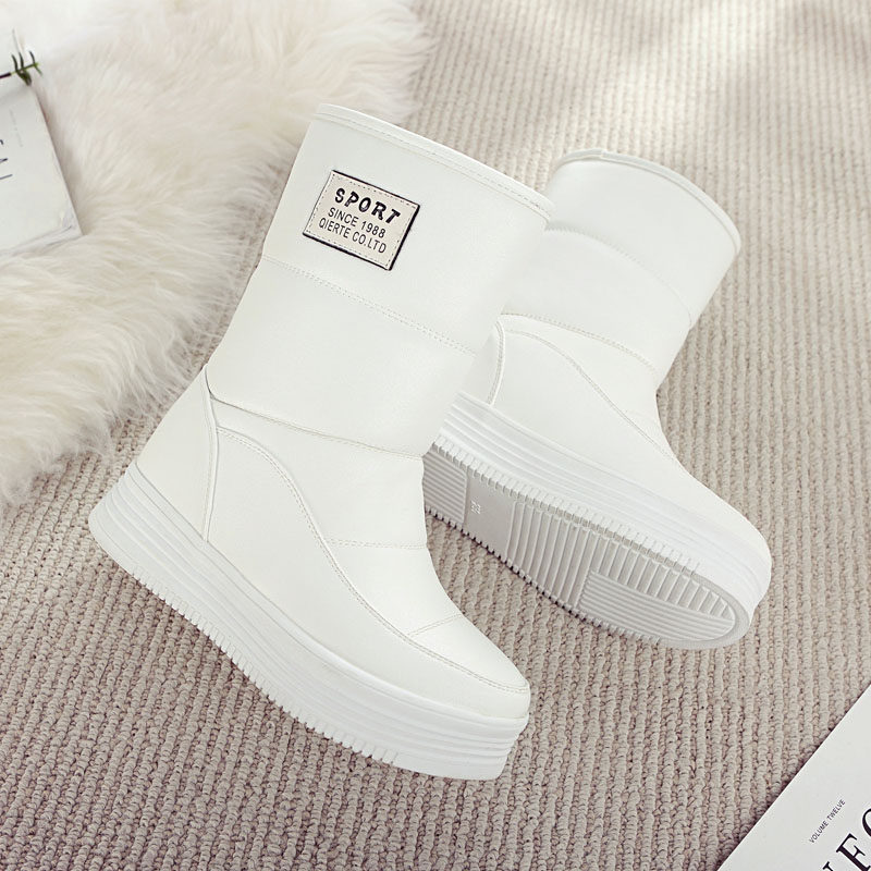 Зимний белый угги Женский средние Дно бисквитного торта замшевый утепленный ботинки ботинки с утеплением водонепроницаемый толстая Северо-Восточный университет хлопок Сапоги