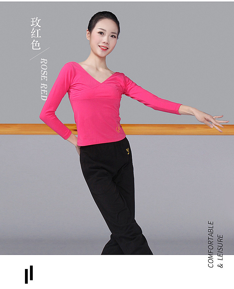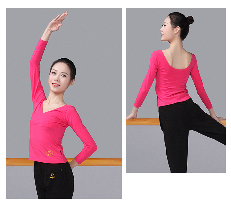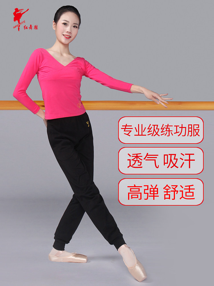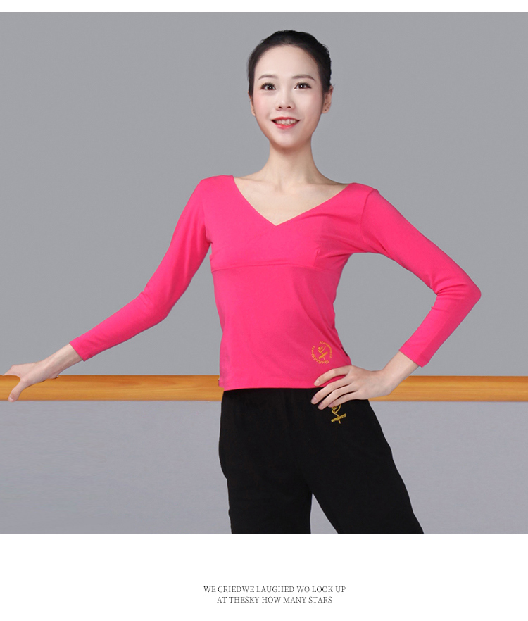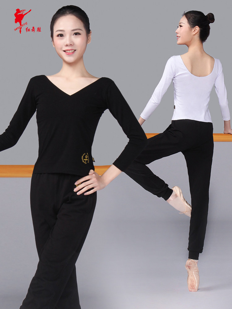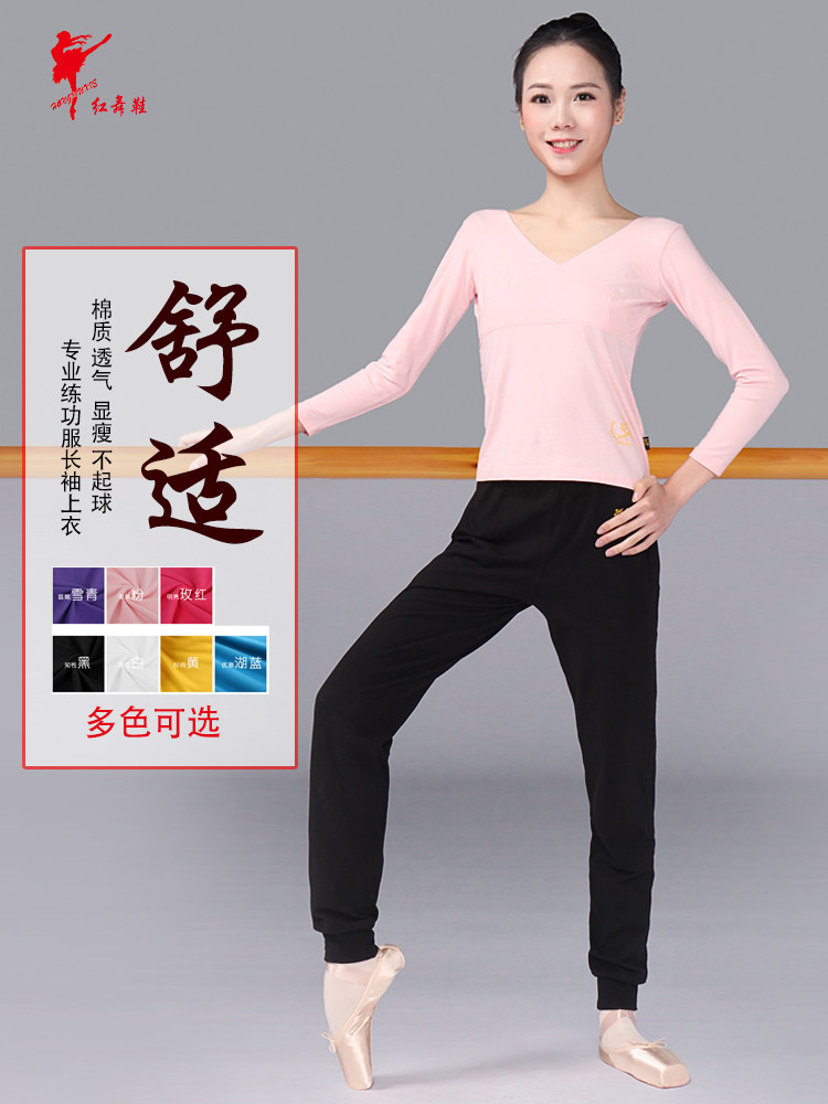 Красный Обувь для танцев, одежда для танцев длинный рукав большой размер чистый хлопок Футболка с V-образным вырезом и крестом верх Одежда женская взрослая детские Одежда для кадриль