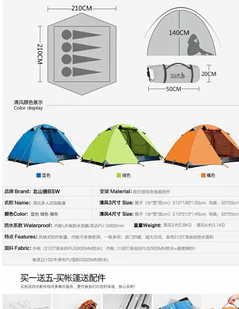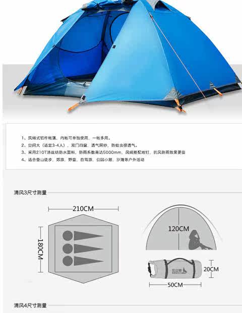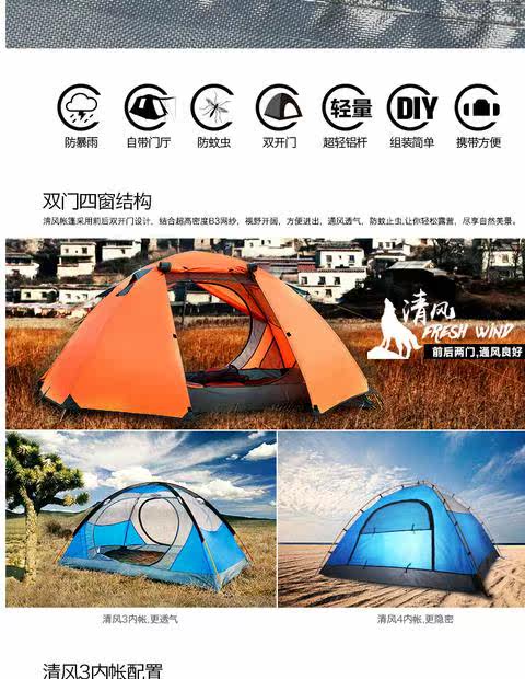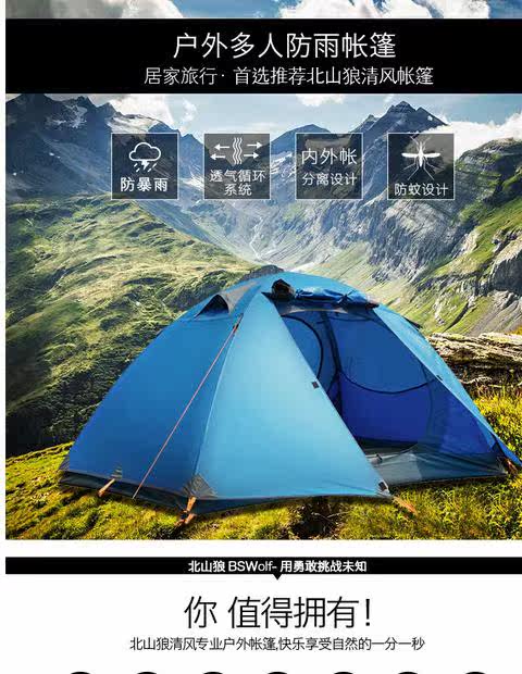 Бешан волк дикая палатка 3-4 человека алюминий Стержень Открытый Кемпинг Палатка Многофункциональный Кемпинг Палатка Анти-водопад Палатка