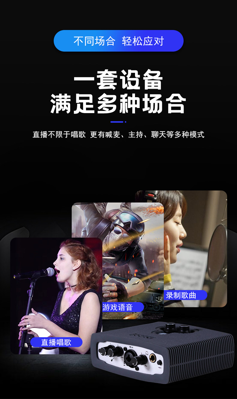 Продукт: Поддержка записи asio без Задержка; балансный вход, без Лишний шум, электрический ток! пакет Отладка, с функцией питания 48 В, с высококачественный Майку больше не нужно один Закажите только блок питания 48 В, сэкономьте низ верх Сто юаней, и что более важно, эффект более профессиональный, чем у обычной звуковой карты.Интерфейс USB внешний Звуковая карта, совместимая с настольными компьютерами, ноутбуками и моноблоками. Сильная мобильность и удобство переноски. Он подходит для онлайн-песен K и профессиональной записи с регулируемым электрическим звуком, поп-звуком и другими эффектами.Доступные услуги: поддержка 7 дней без Причины возврата и обмена. пакет отладка, цена за пару Одна отладка.
