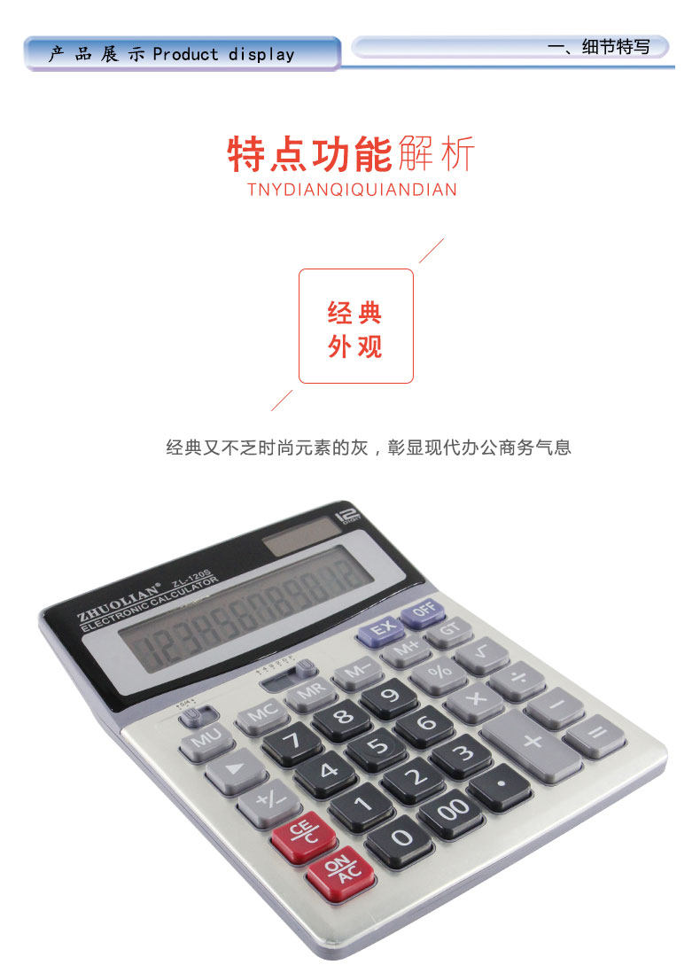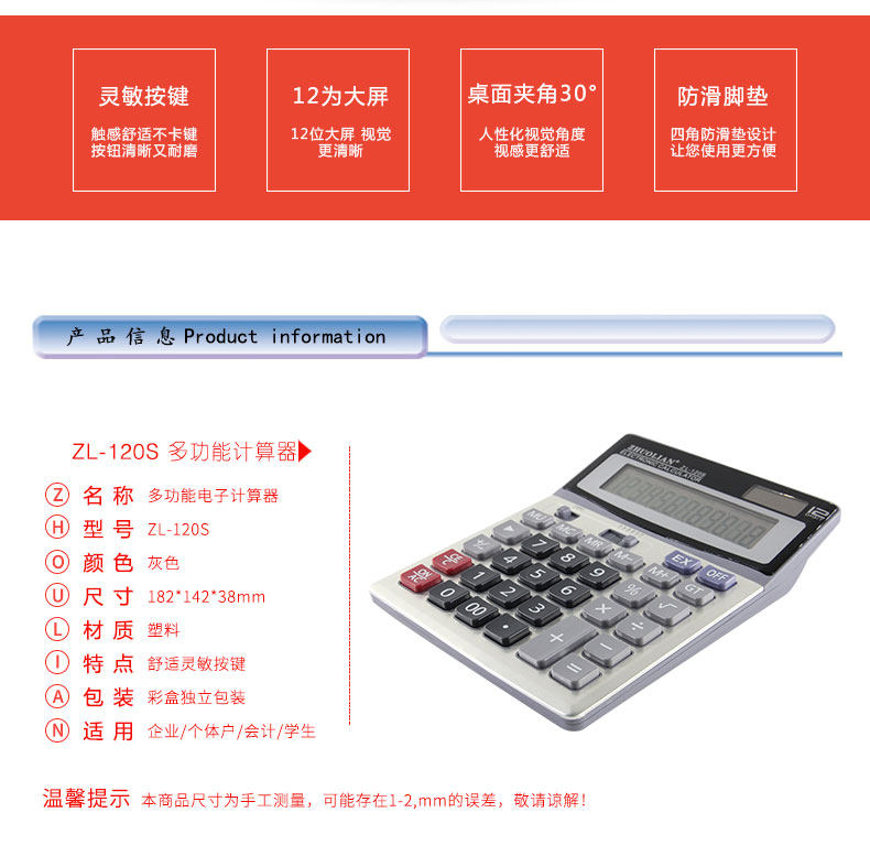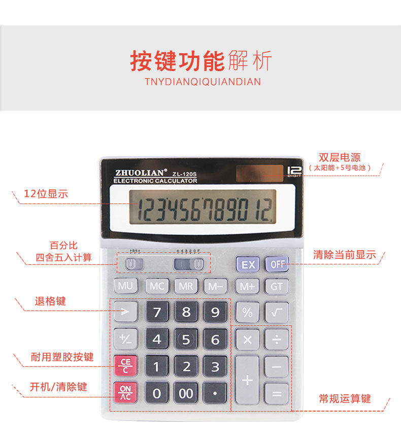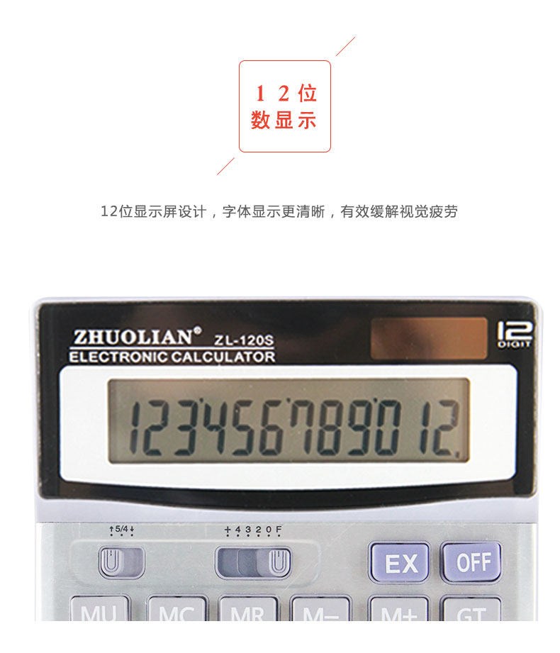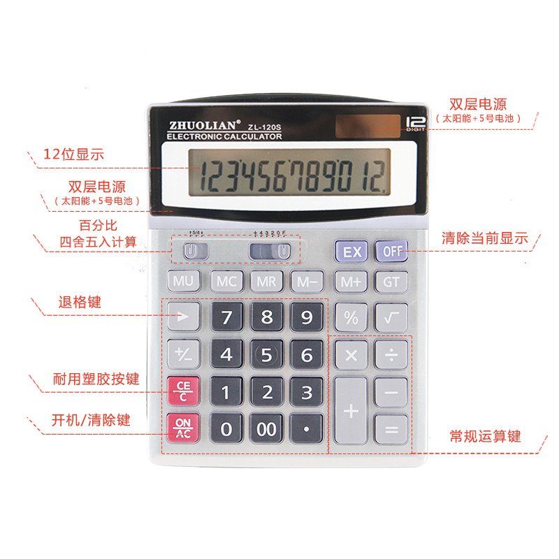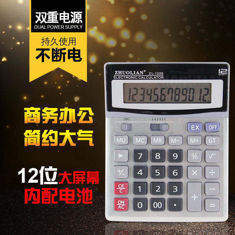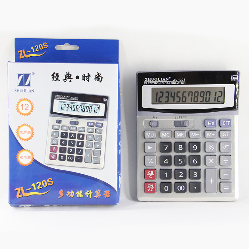 Чжуолский калькулятор ZL-120S 12-битная солнечная энергия двойной аккумулятор Распределение источника Батареи большой экран