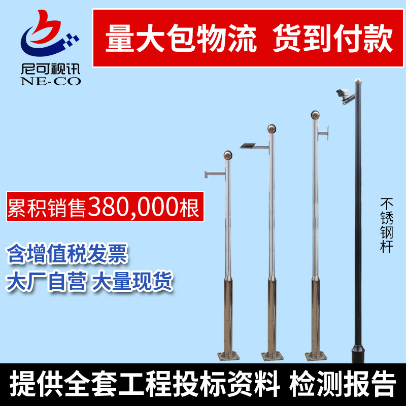 监控立杆3/3.5/4/5/6米小区不锈钢摄像机立柱横臂室外道路八角杆