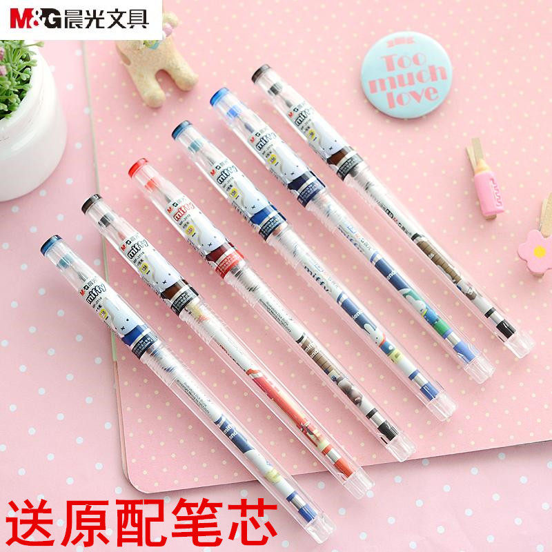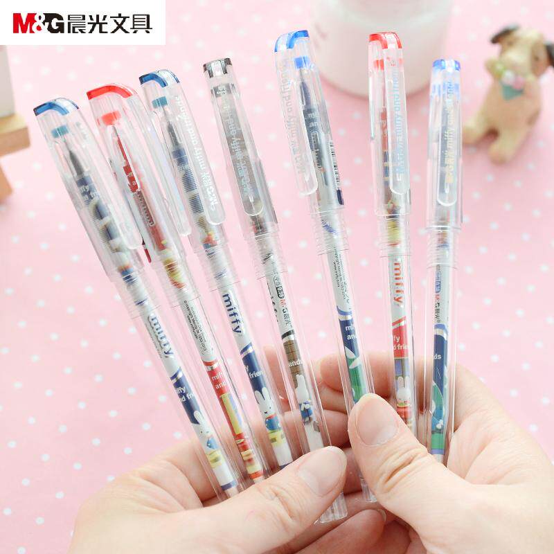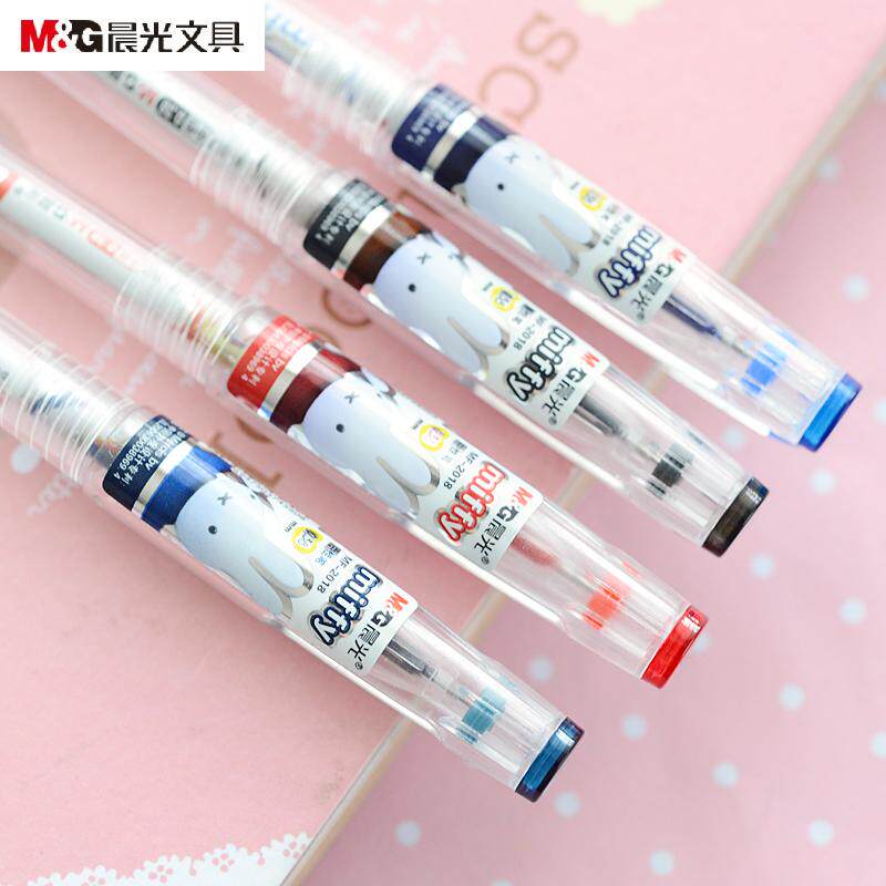 6 палочек бесплатная доставка по китаю Перьевая ручка Chenguang 0,38 мм мультяшная гелевая ручка Miffy MF-2018 очень тонкая и простая в использовании ручка для воды 0,38 мм заправка черный голубой полностью стрелка Перьевая ручка Tube Miffy, ручка большой емкости