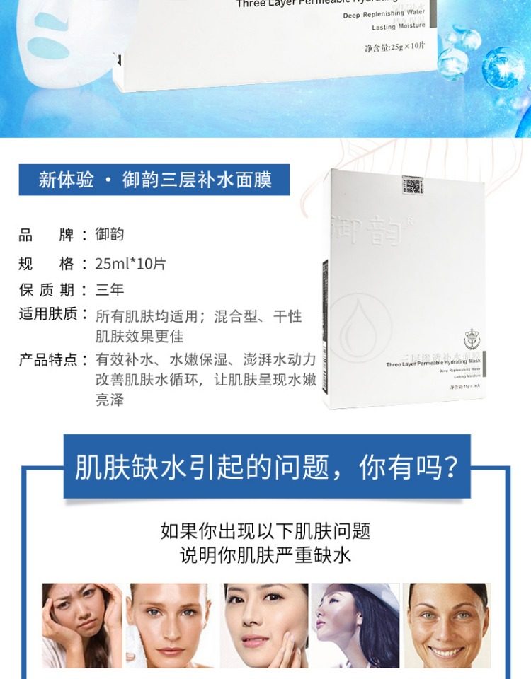 Оригинал Ююн шелк белый Три -слойная проникновение водяной наклейки шелковой маски, увлажняющая неяйс -пленка ледяная маска