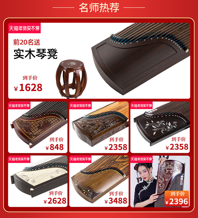 Runyang Guzheng профессиональное обучение Guzheng фортепиано копать инкрустацию из массива дерева для начинающих дверь Янчжоу дома играет на музыкальном инструменте для выставления оценок
