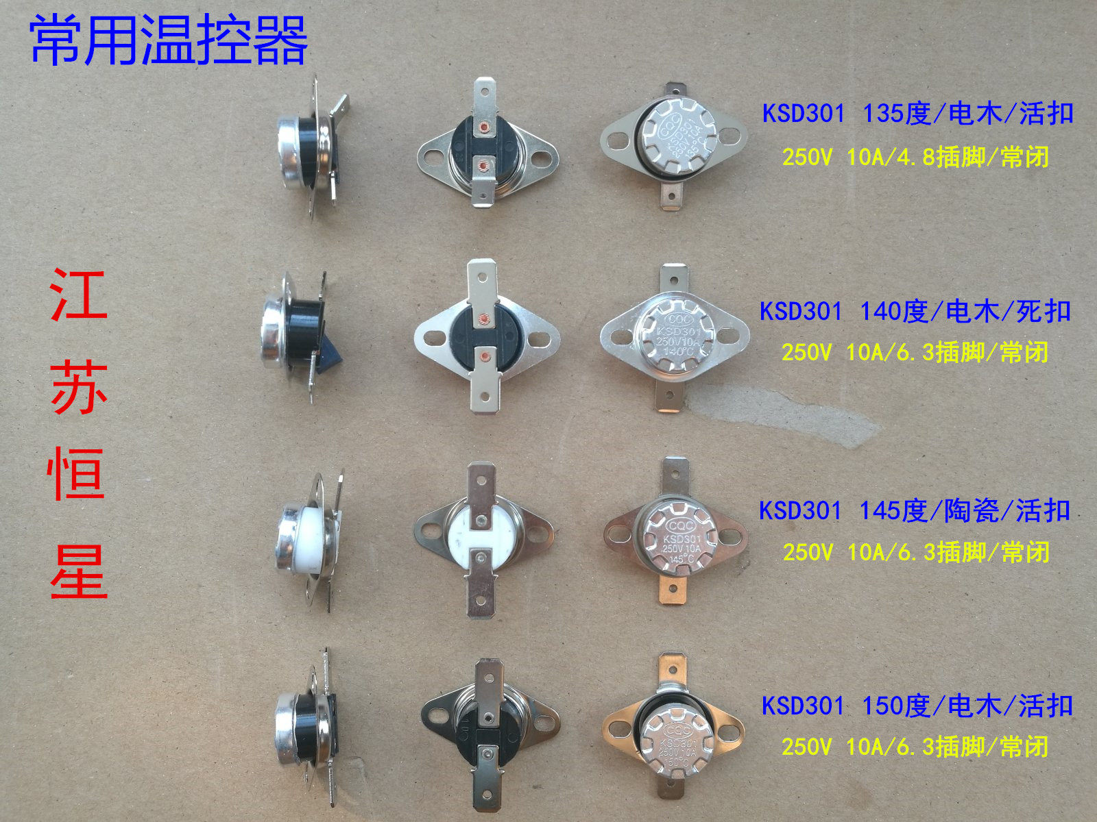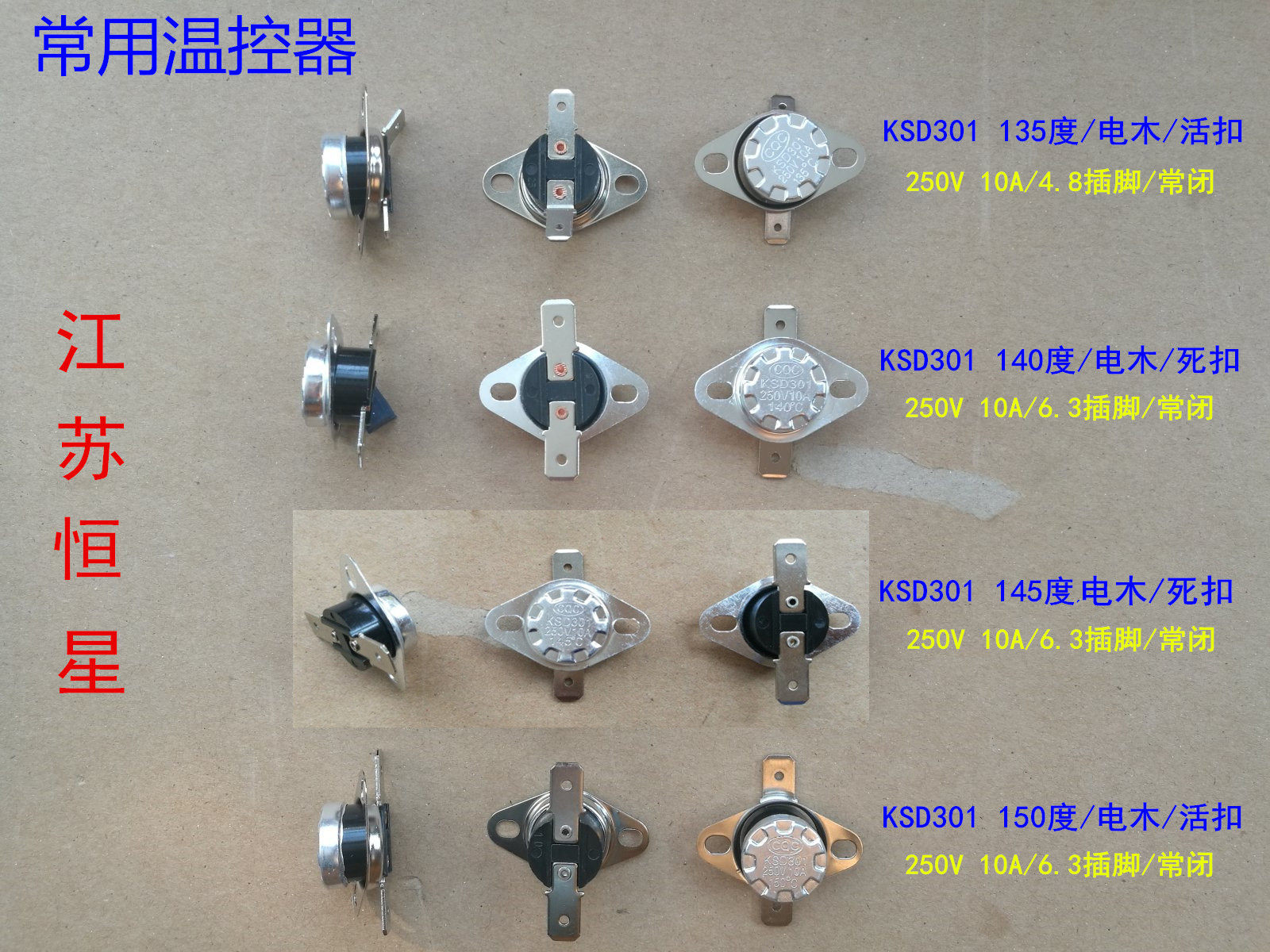 KSD301-145 градусов- Электрическое дерево / 250 В 10А /умереть с застежкой / Плоскостопие(6.3 PIN-код)/ Нормально закрыт