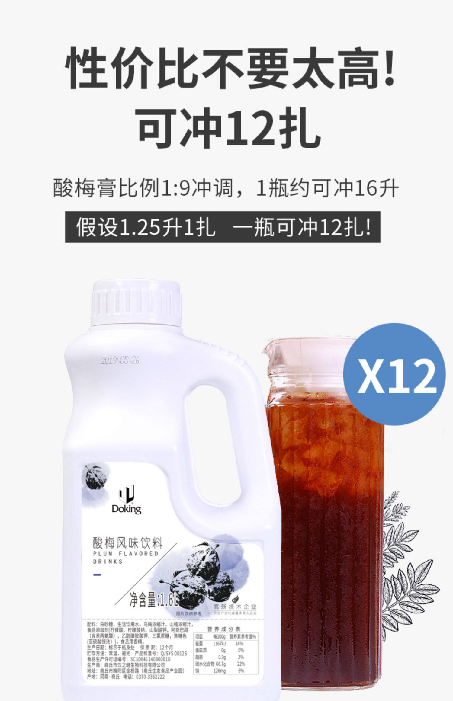 Shield Karbery Pilerper в 10 раз концентрированную концентрацию сока сливы сливы высокая Callumber сок 1.6L Гонконг-стиль кислый сливной суп