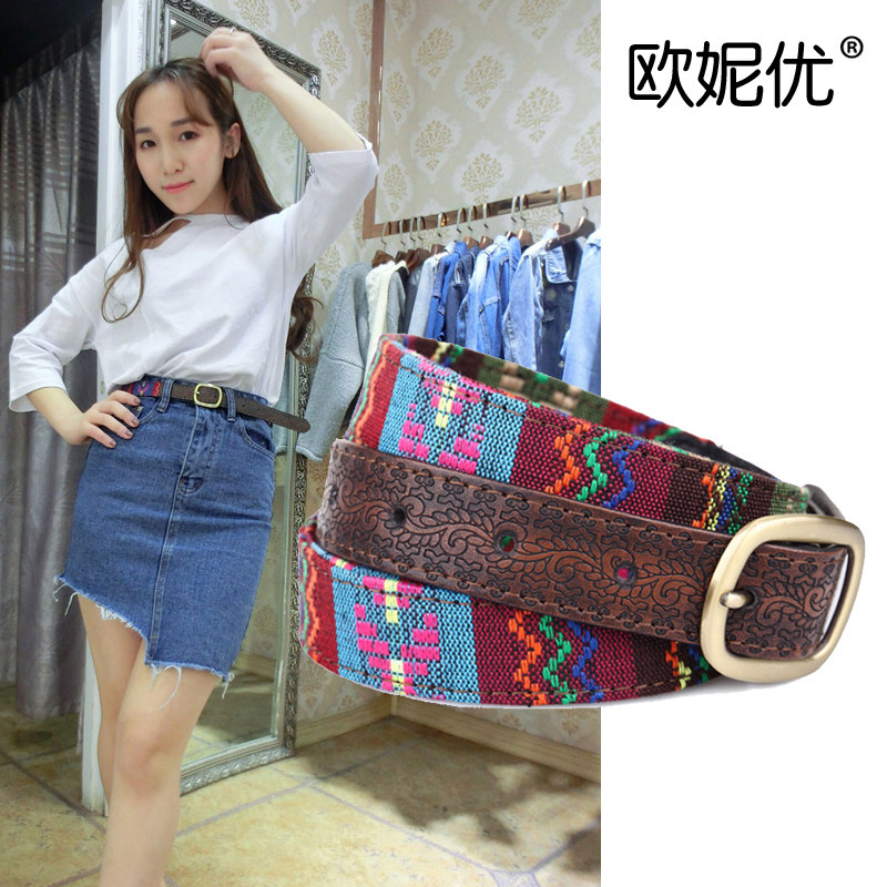 Народно-обычай ремень вышитый женский пояс корейская версия для отдыха Дикий джинсовый юбка популярный Ткань декоративные брюки прилив