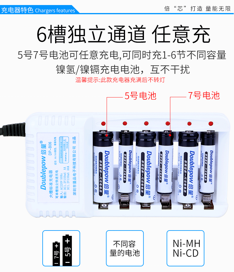 Двойной -объем 7 № 5 может перезарядить зарядное устройство аккумулятора комплект С 6 секциями зарядных батарей № 5 может взимать № 7