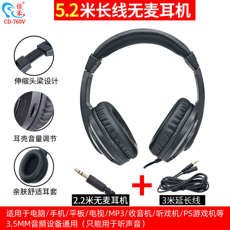 Гарнитура для ТВ Jiahe CD-790V без Мекка длинный налобный компьютерный мобильный телефон для прослушивания музыки имеет Линия MP3 радио универсальный музыкальный монитор 2,5 метра 6 метров линия управления HIFI домашняя гарнитура