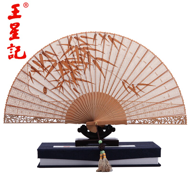 [王星记檀香扇子] красный [檀香木扇折扇中国风特色工艺镂空礼品扇礼盒] комплект