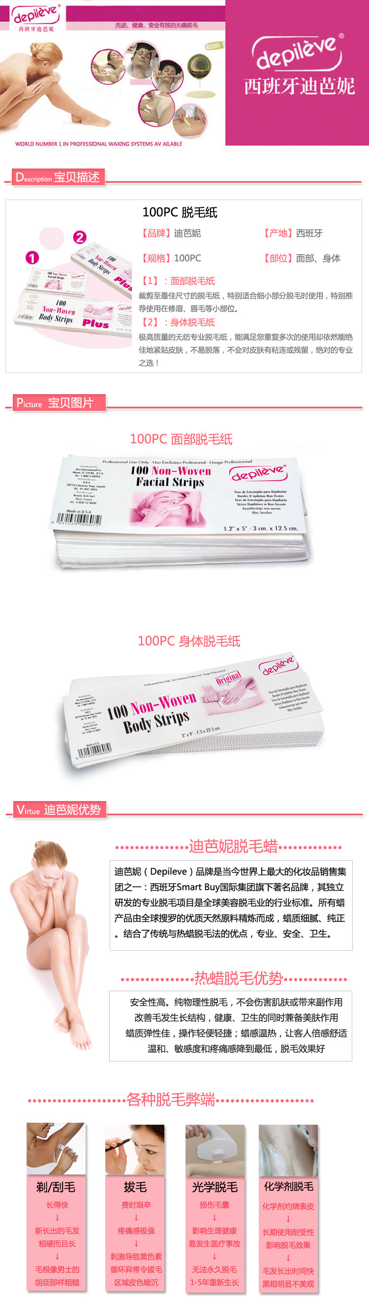 Испанский дибани Бумага для эпиляции Бумага для эпиляции на теле в оригинальной упаковке Импортировать