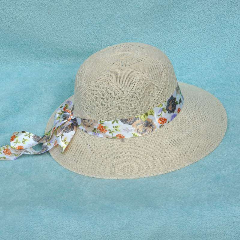 Корейская версия для отдыха Пляжная солнцезащитная шляпа с большими полями и растяжками, женская соломенная шляпа с цветочным рисунком бантики Шляпа от солнца с узлом