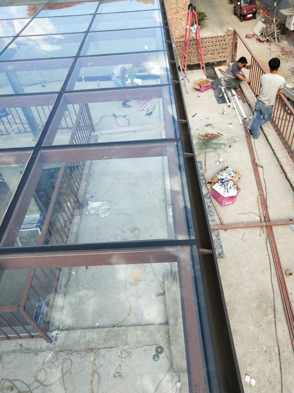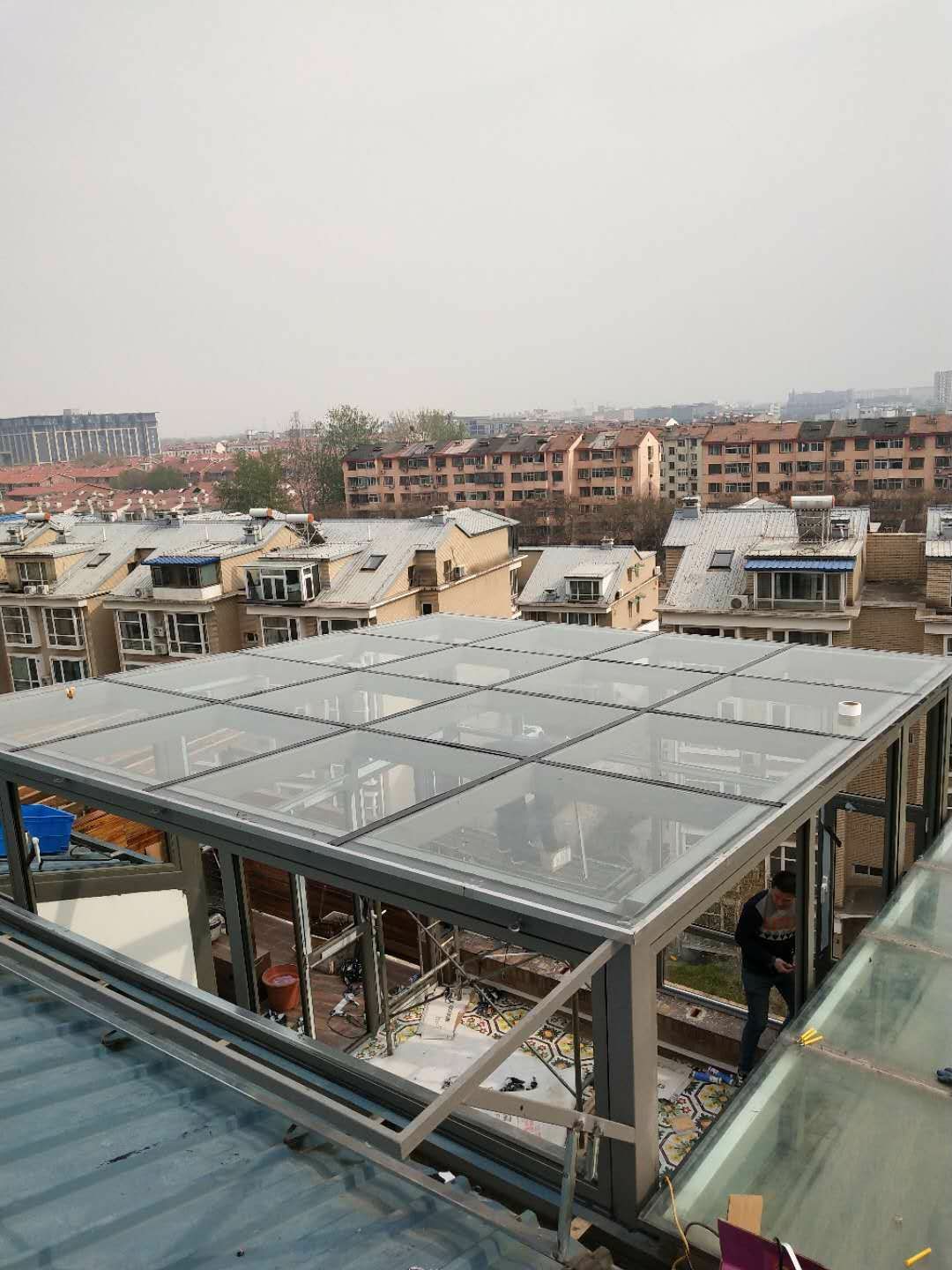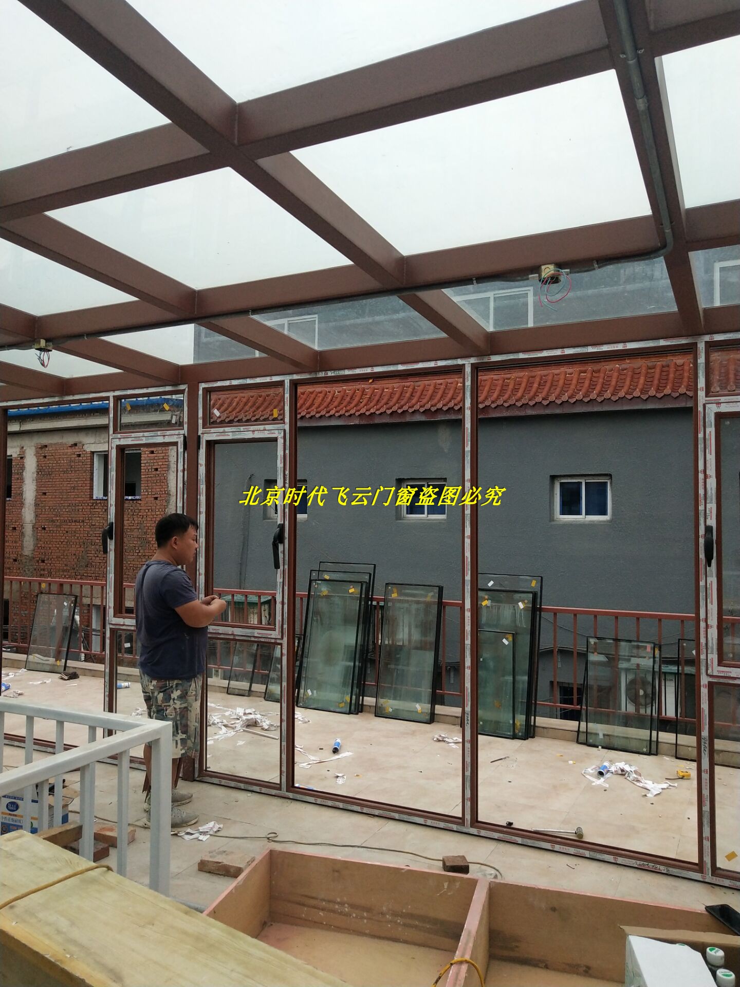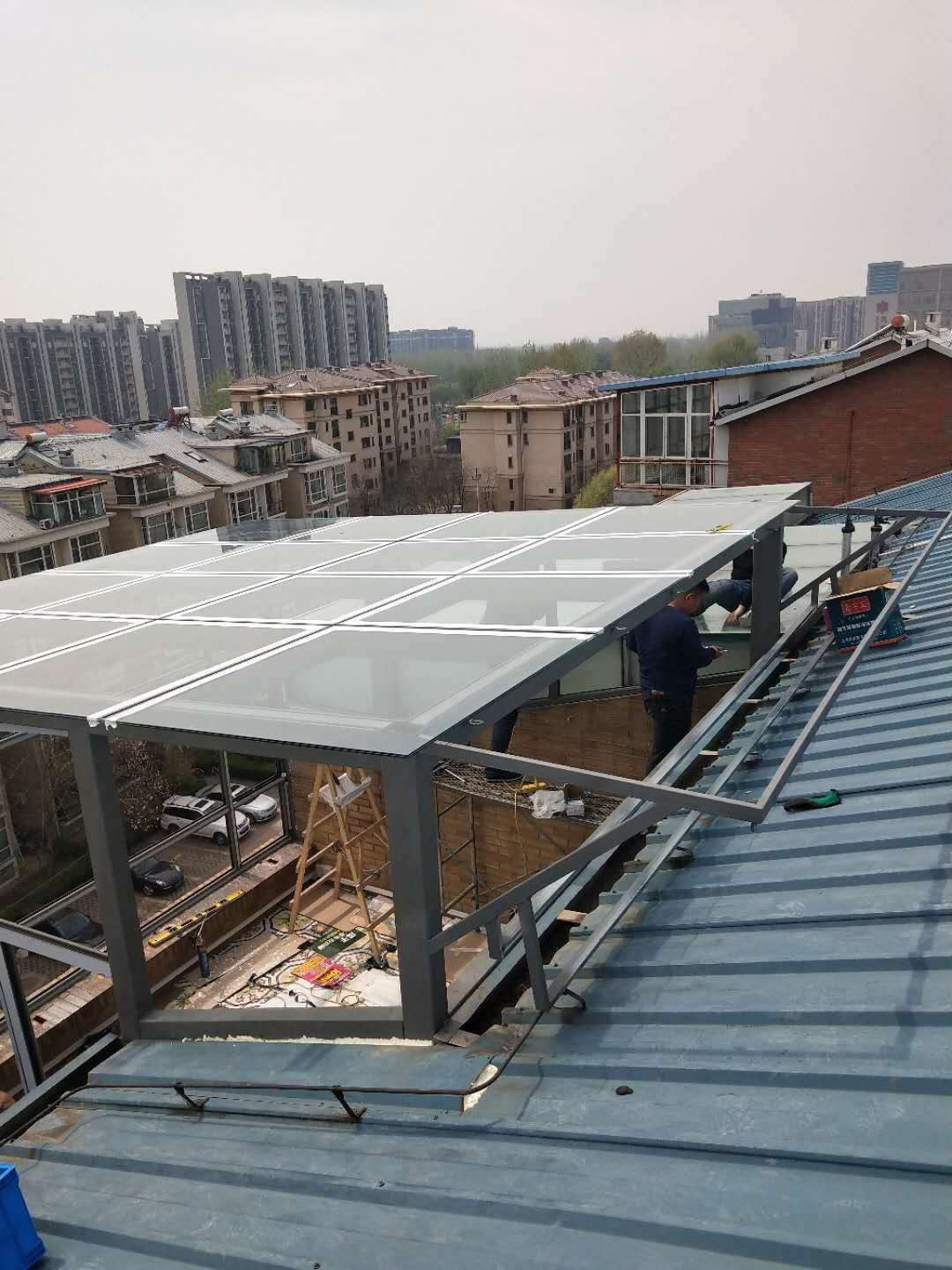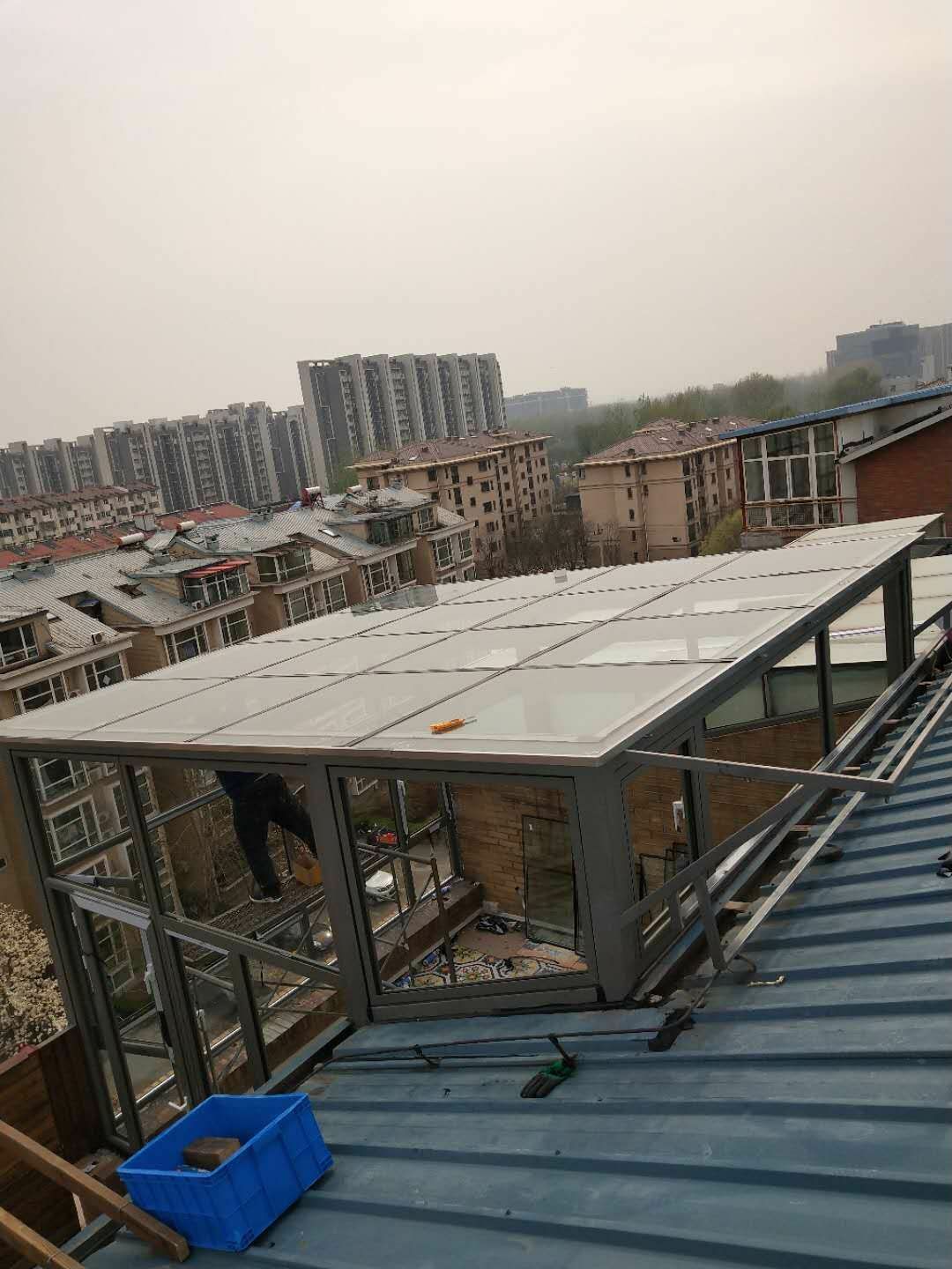Пекинский сломанный мост алюминий дверь окно Дизайн солнечного света / ступенчатая терраса зажимы полые держа стеклянные солнечные лучи