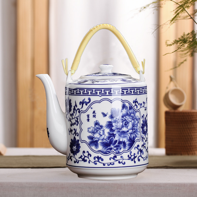 Jingdezheen Керамика Керамика Большая емкость Охлаждающий чайник Керамический синий и белый фарфоровый яма Япо Большой чайник бесплатная доставка по китаю
