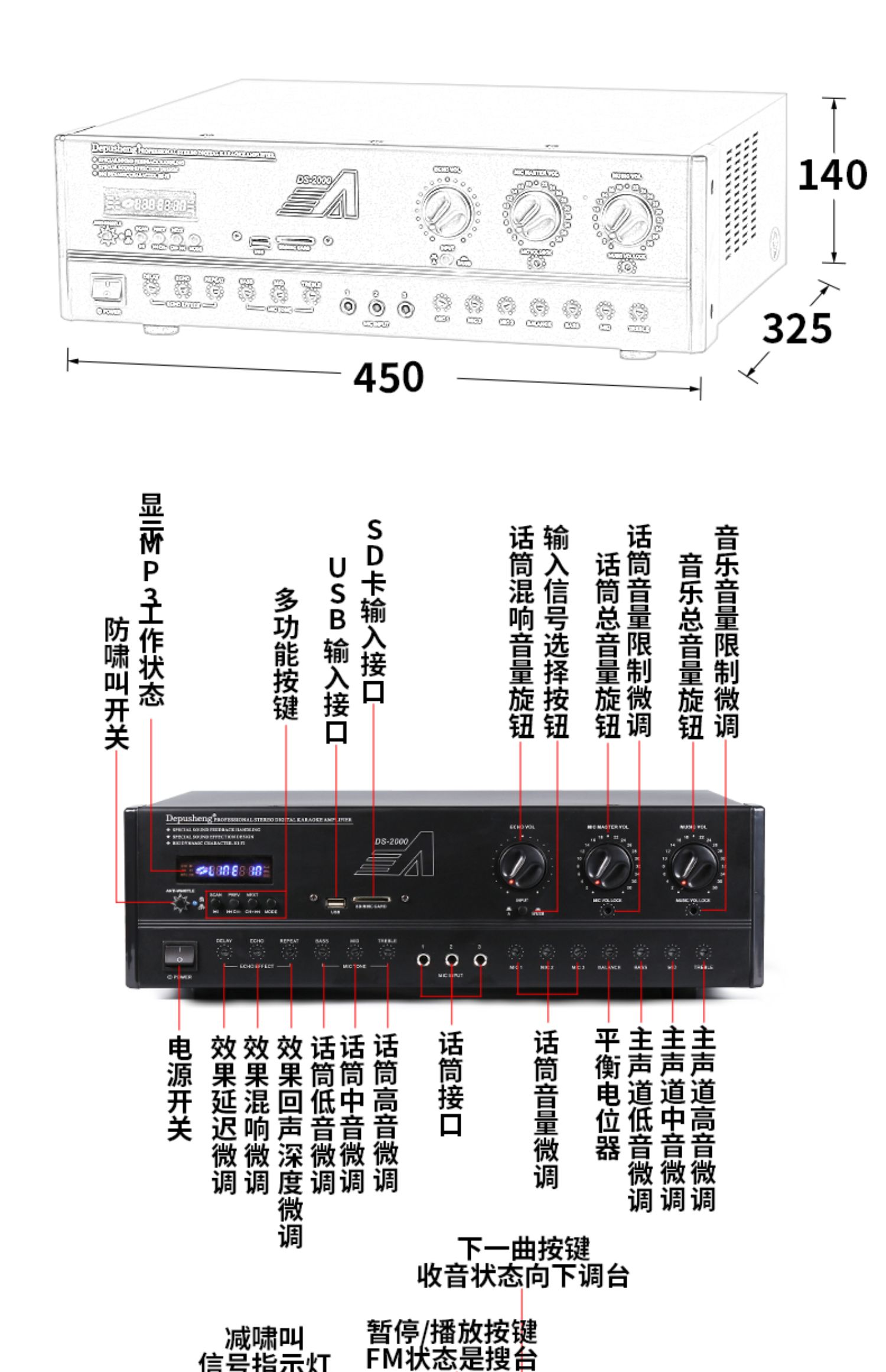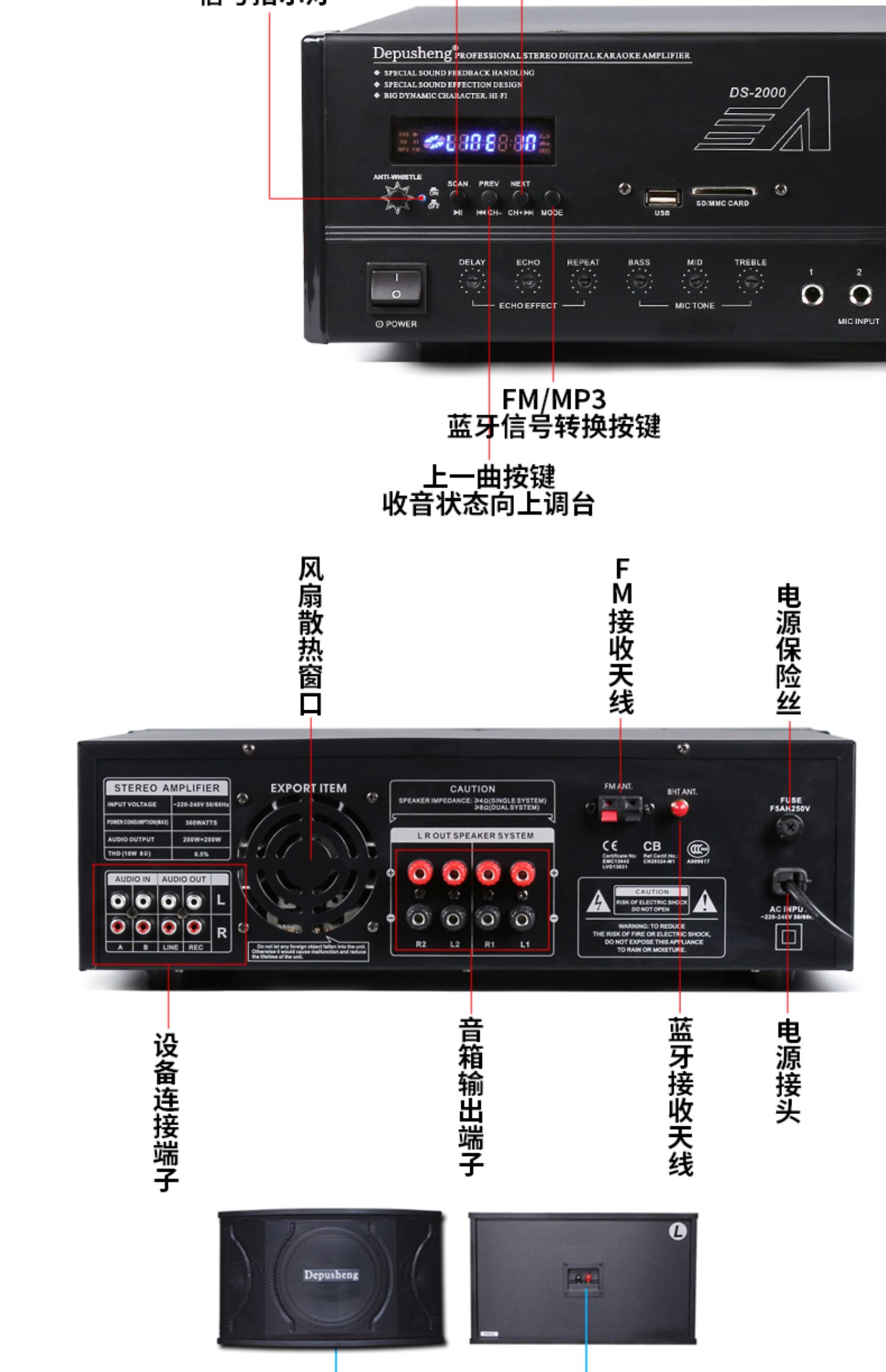 DE кожзаменитель Sheng DS2000 карта пакет KTV усилитель мощности Karaoke Audio Consolidated Anti-Whitewire синий зуб