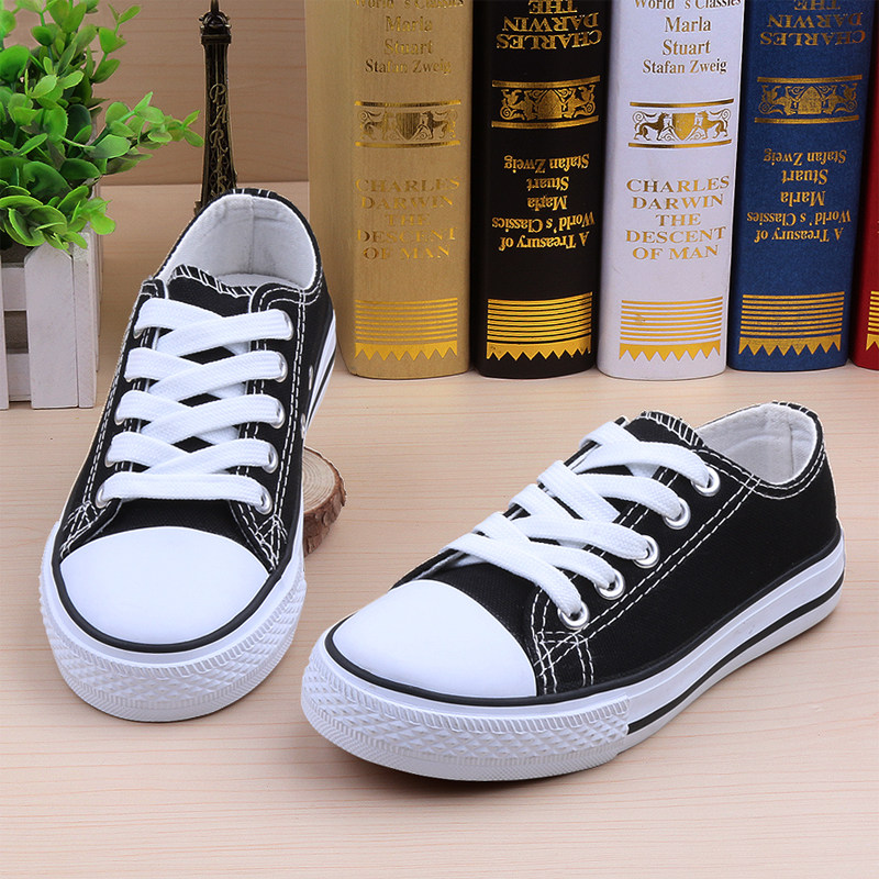 Детские Родитель-ребенок для отдыха Обувь большой мальчик низкий кеды на мальчика на девочку со шнурками черный белый Wellamen Student на плоской подошве детская обувь