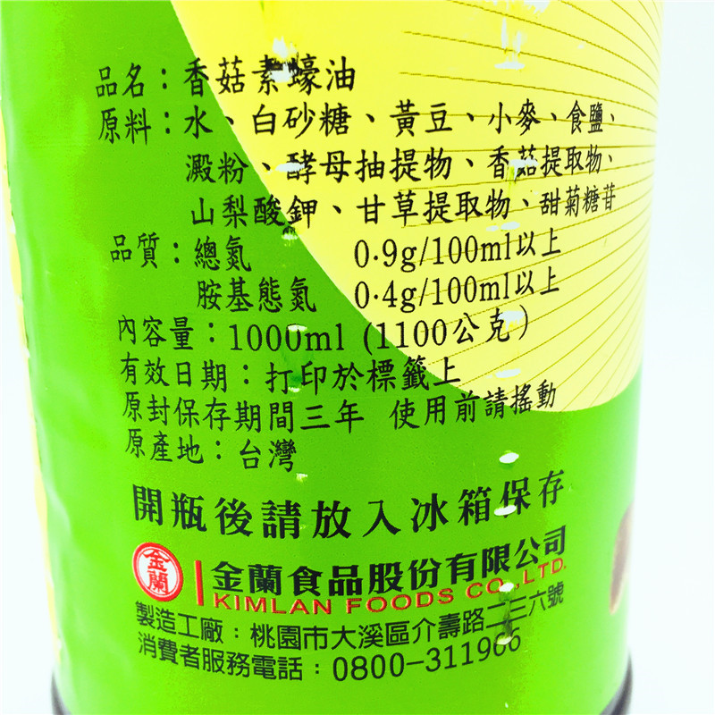 Полные 2 бутылки бесплатная доставка по китаю Тайваньская еда Вегетарианский устричный соус с грибами Цзиньлан 1000 мл 100% чистый веганский пивоваренный соус