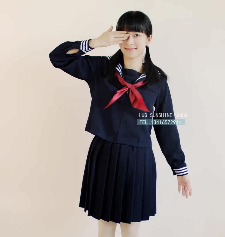 - Обгонять темно синий с замками длинный рукав Сейлорная одежда + красный Треугольник