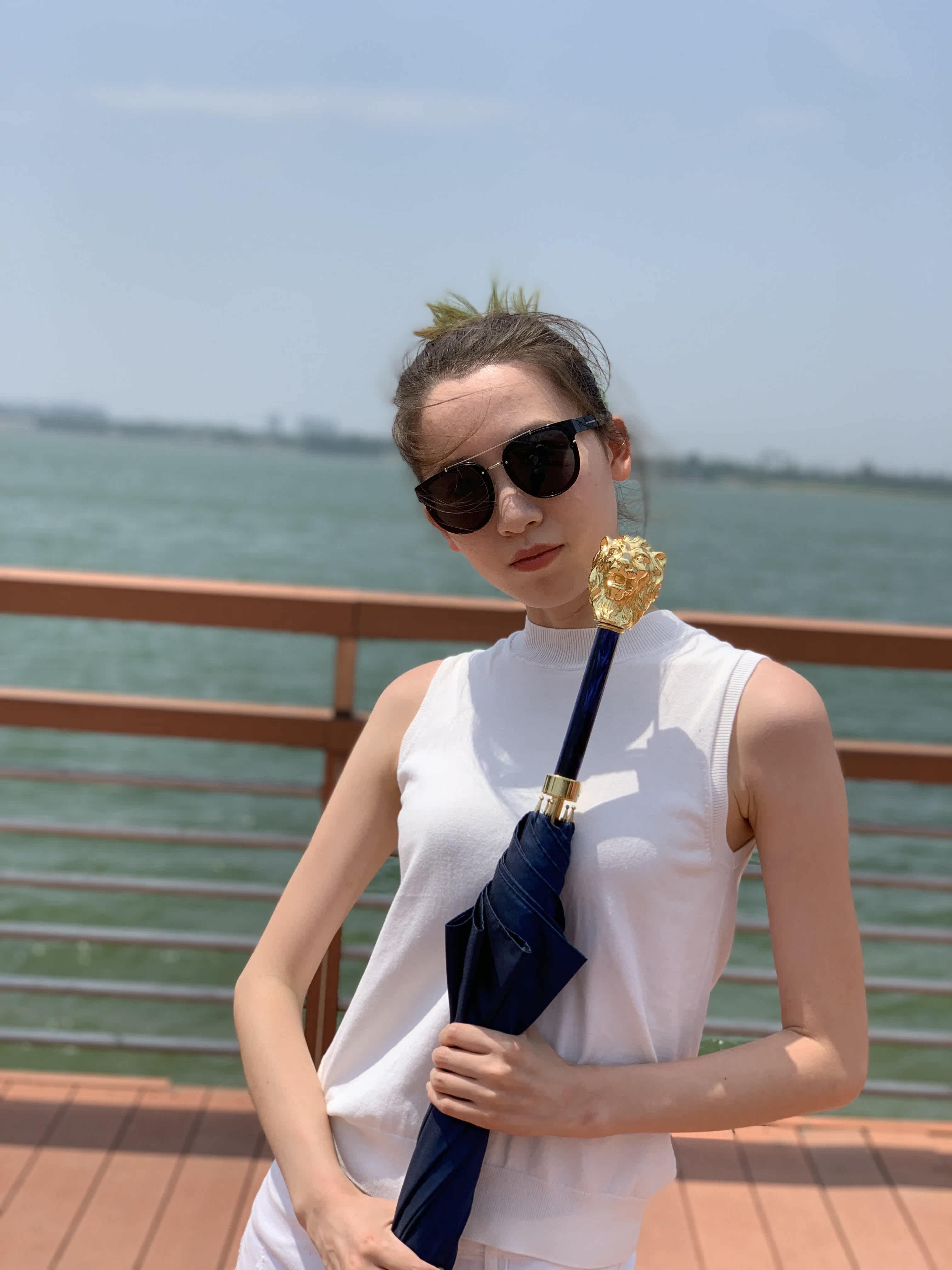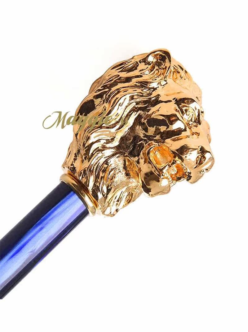 Итальянский зонт Pasotti мужской Прямая ветрозащитная золотая ручка в виде льва голубой Модный зонтик Gentleman Business Star