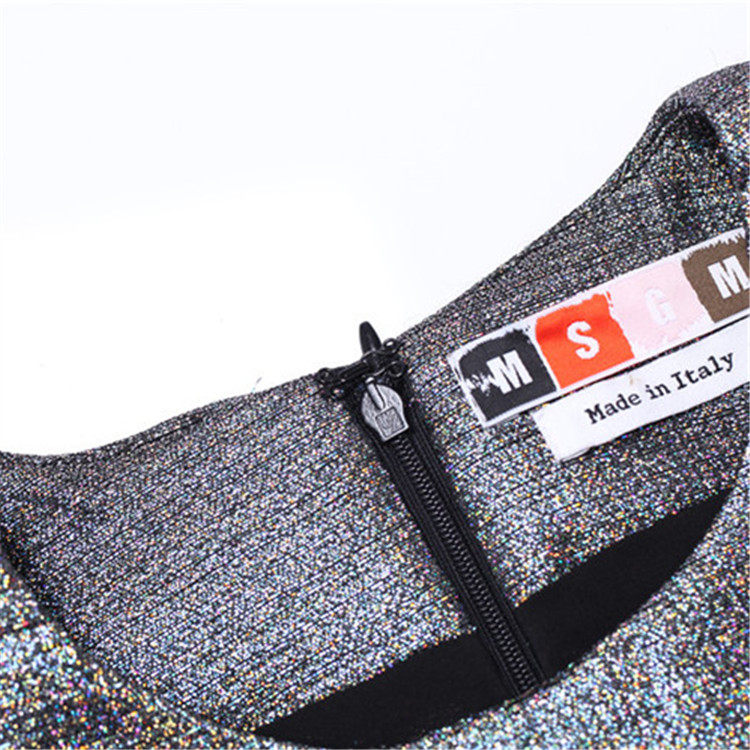 【Конец сезона распродажа 】 товар в наличии MSGM серебряный Задний с замками женский прямые короткий рукав платье