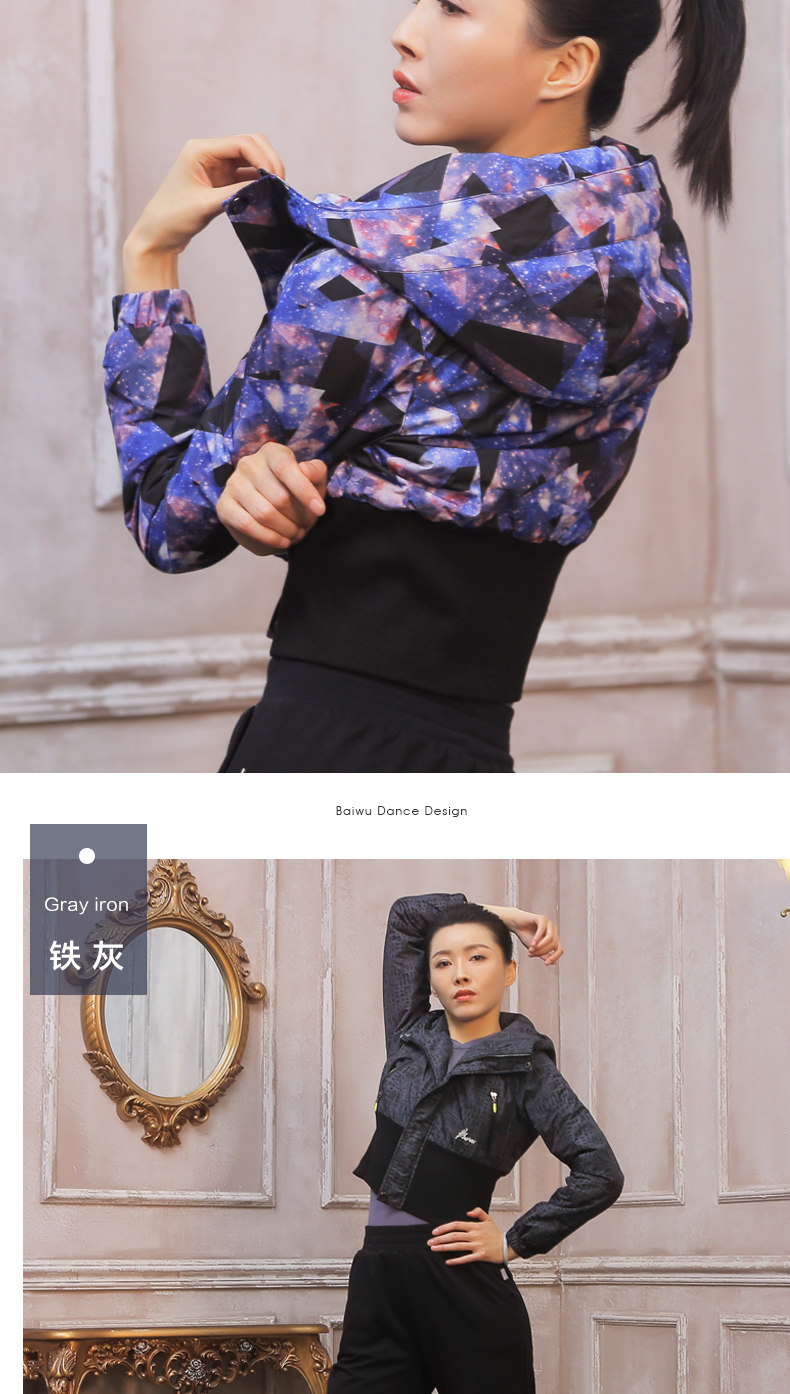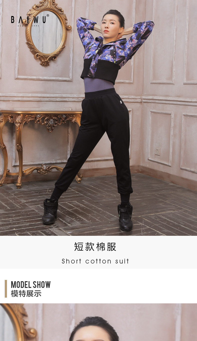 Байванг танцевальный суд осень-зима новая коллекция женский удерживающий тепло Холодный хлопок Одежда короткий приталенный верх Одежда капюшон Практика танца куртка