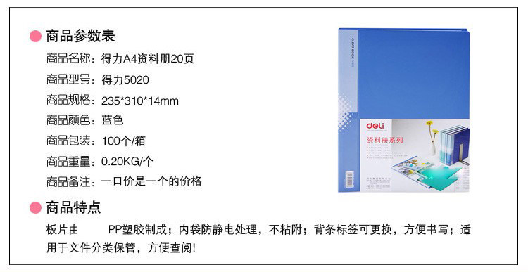 Deli Power Data Book доставка 5020 Книга данных A4 20 Страница папки страницы папки страницы