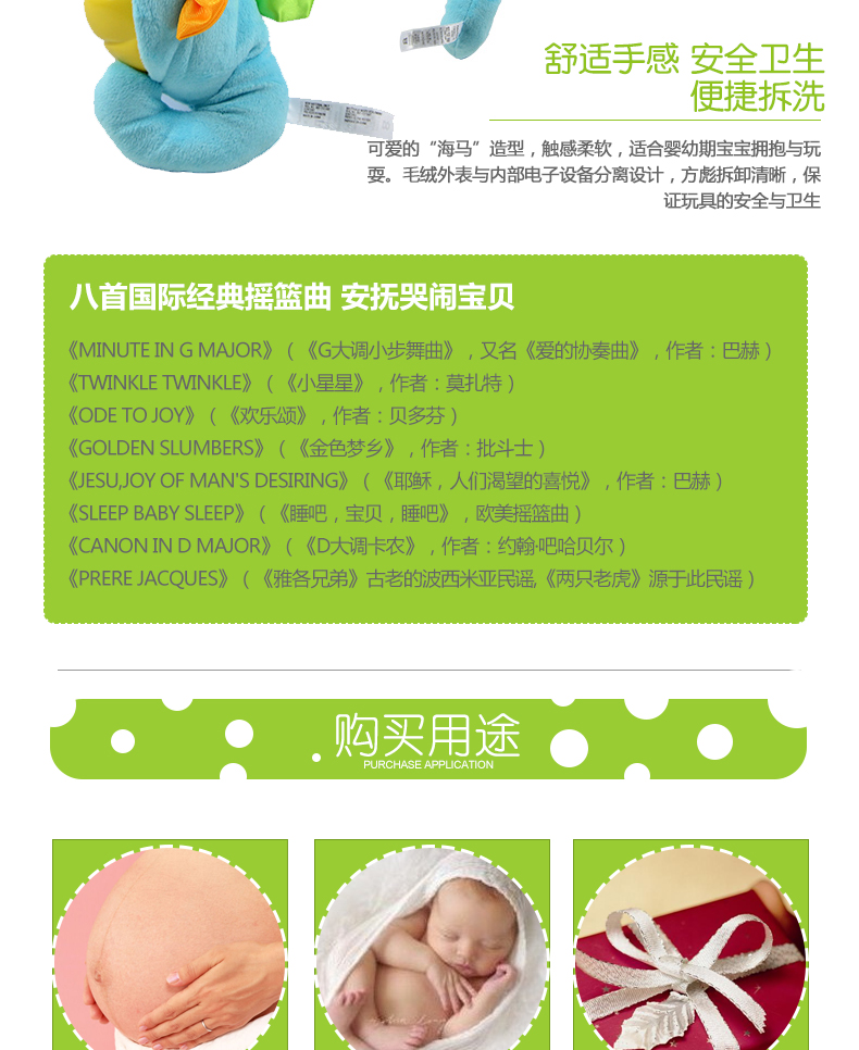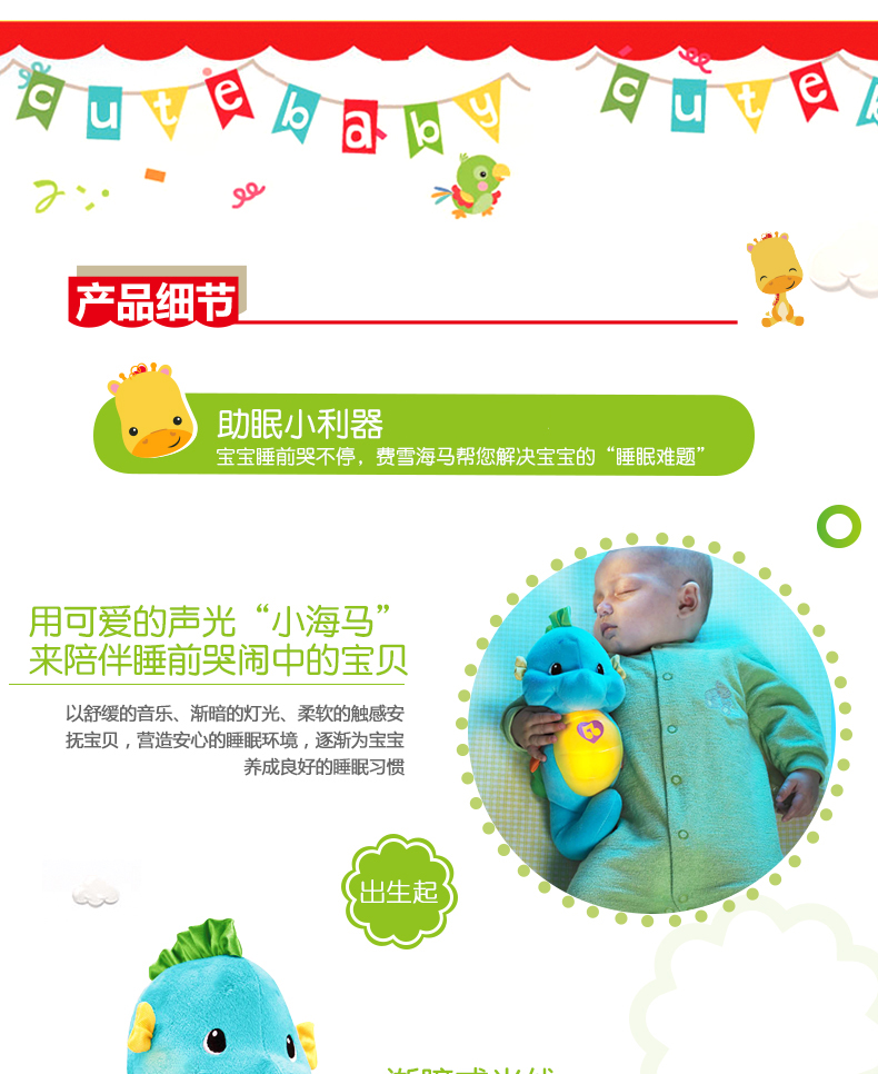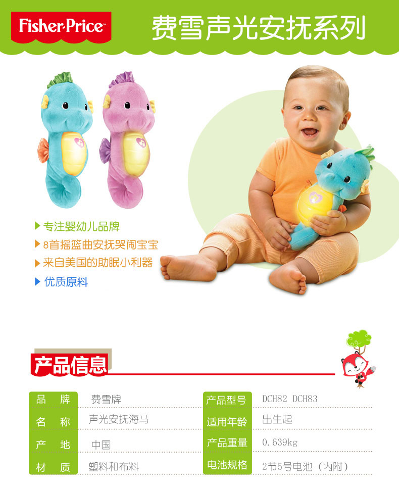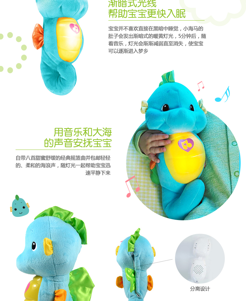 Fisheron Sound Уменьшает небольшой гиппокамп детские Младенческий сон успокоите игрушечную музыку плюшевые Животное сладкое сон