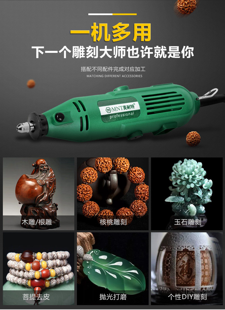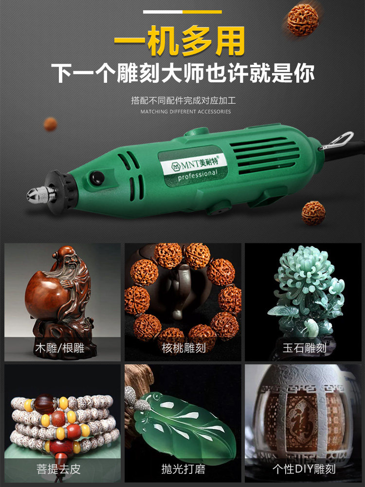 Германия Микет? Электрическая мельница Маленькая шлифовальная машина комплект Электрическая полировальная полировка артефакт Джейд гравировальный инструмент