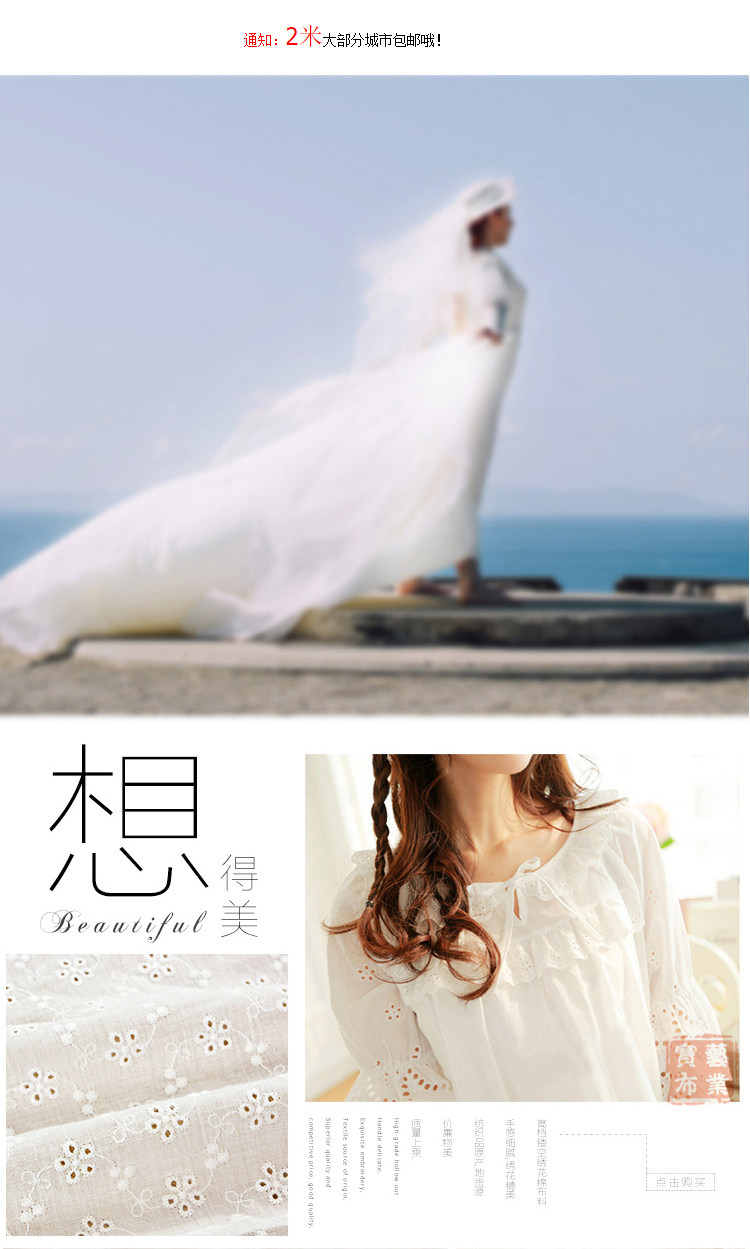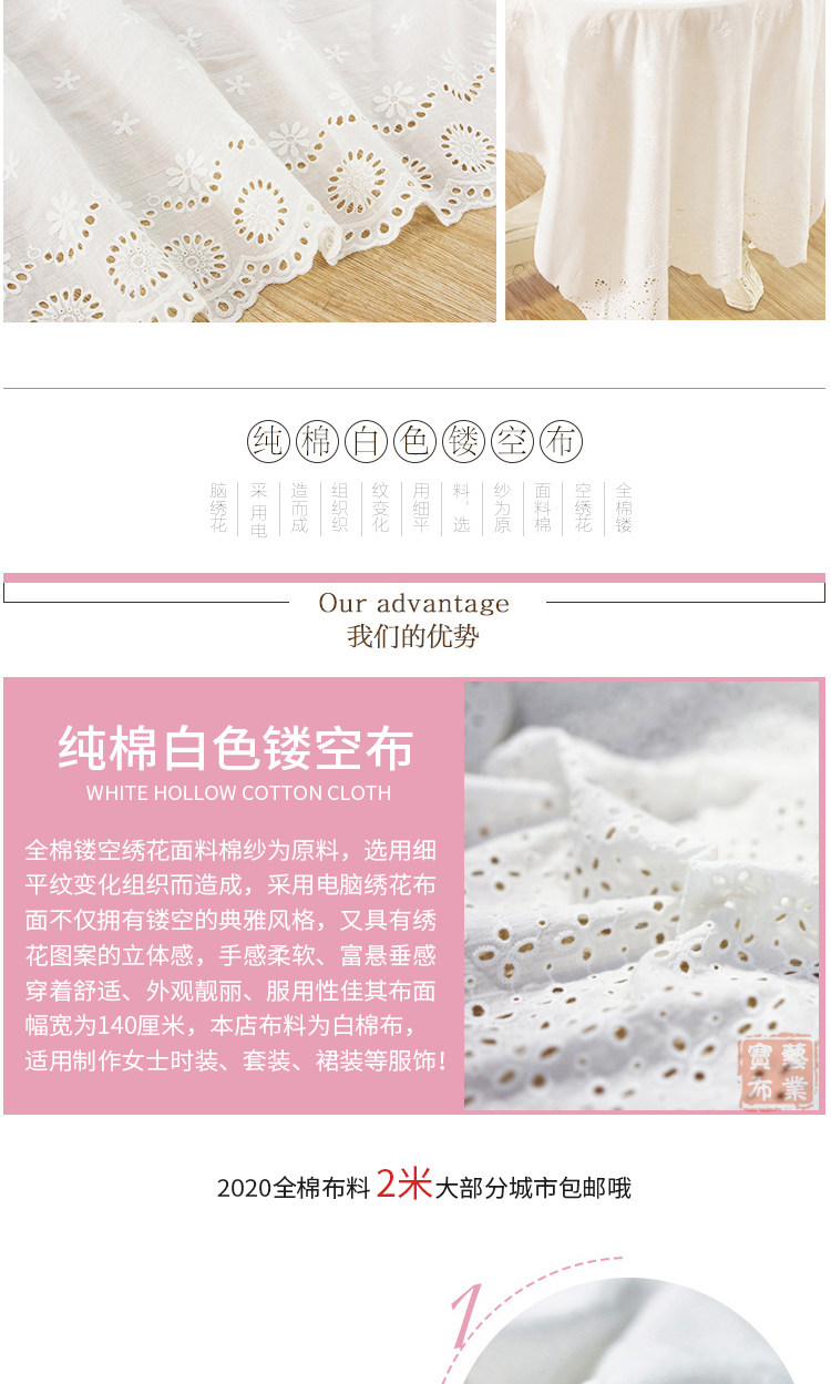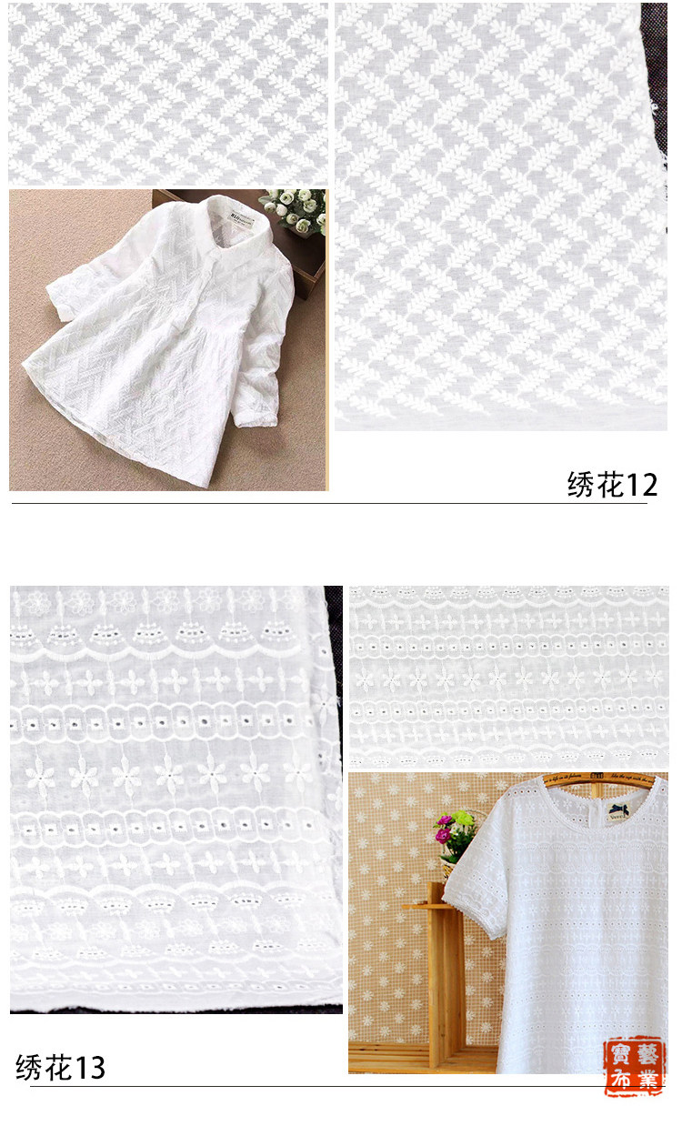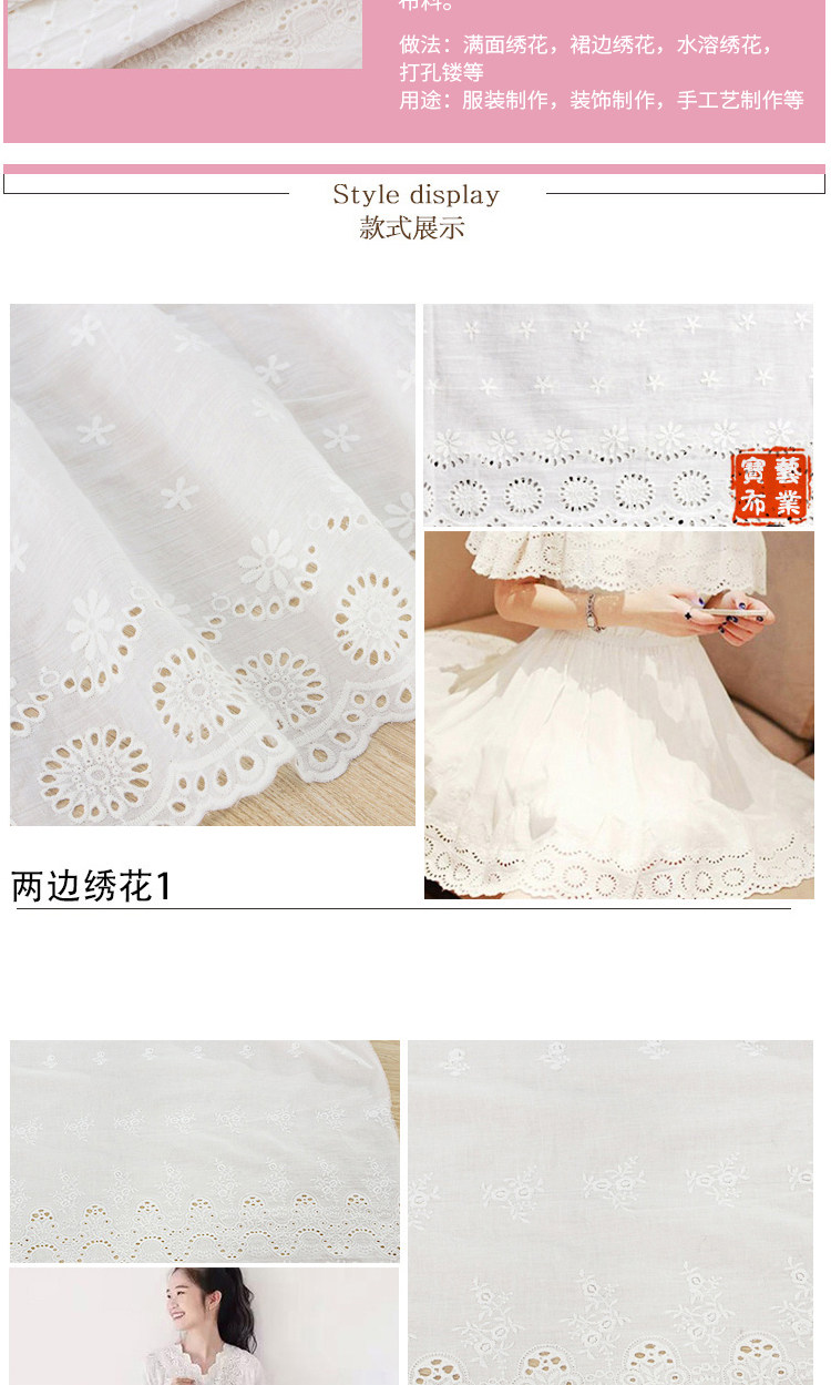 Хлопковая кружевная белая ткань, летняя одежда, детская юбка, с вышивкой