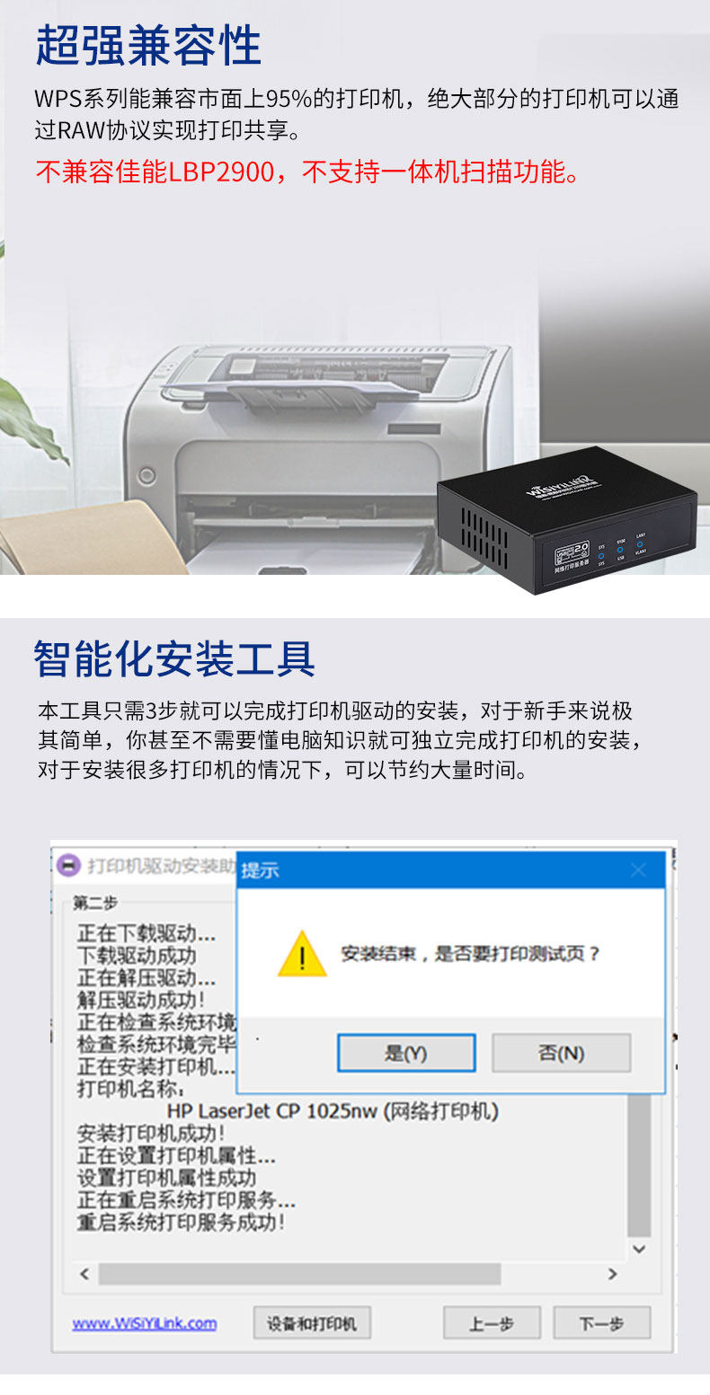 Сервер принтера Server Sharing Print HP1007 / 1008/1020 / M1005 Span Span WPS101