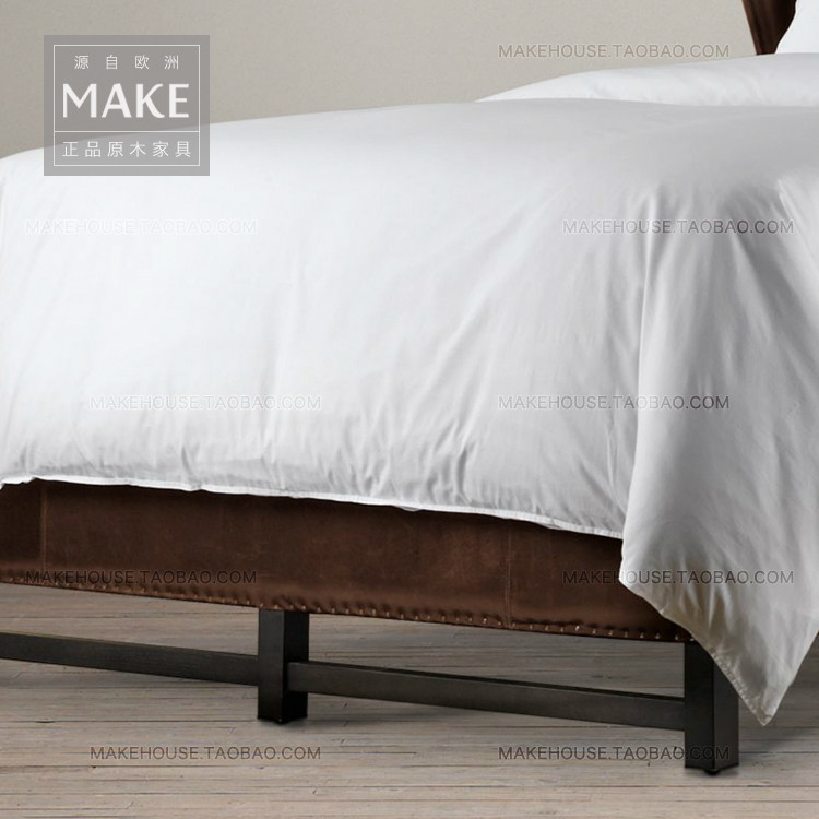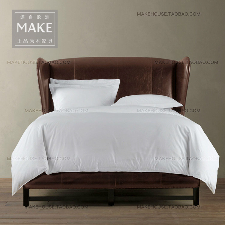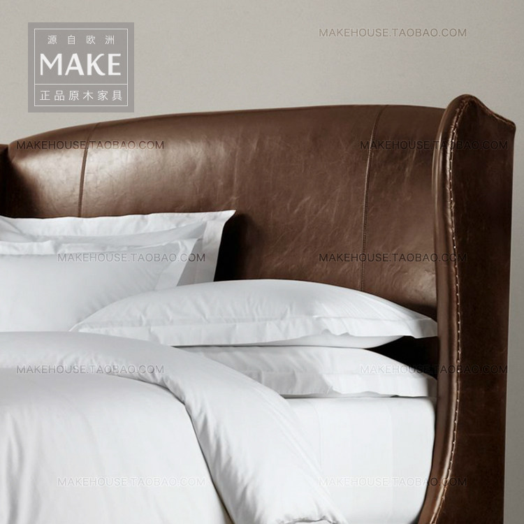Американец классический винтаж Итальянский слой головы кожаный Бродить пакет Твердая деревянная кровать из натуральной кожи Двуспальная кровать