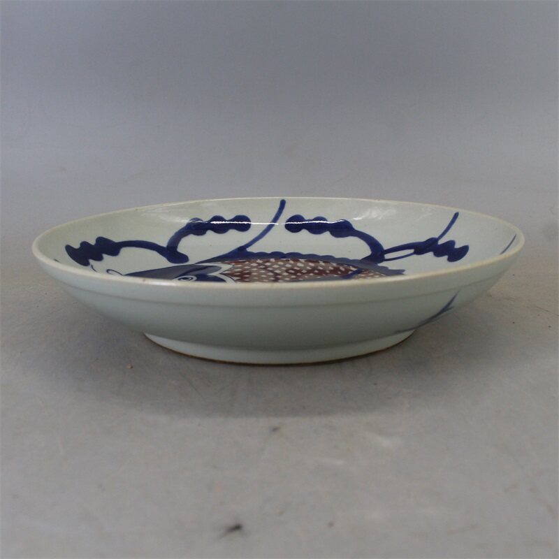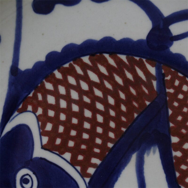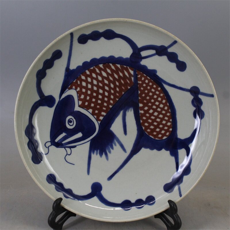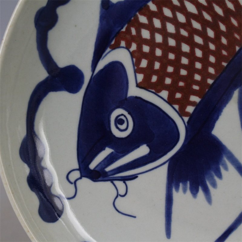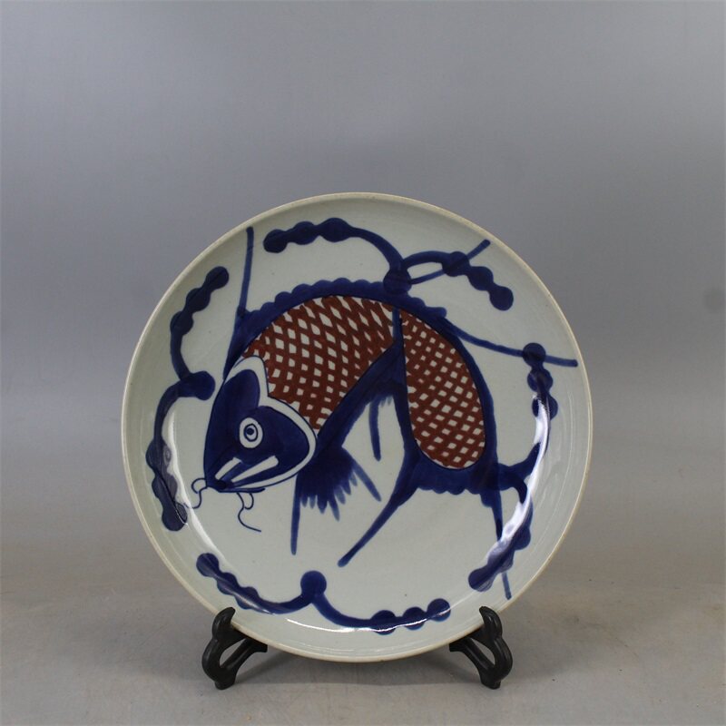 Ясно поколение Синяя и белая глазурь красный Карпие блюдо античный античный полностью ручная работа копия Древние фарфоровые украшения Старого товара