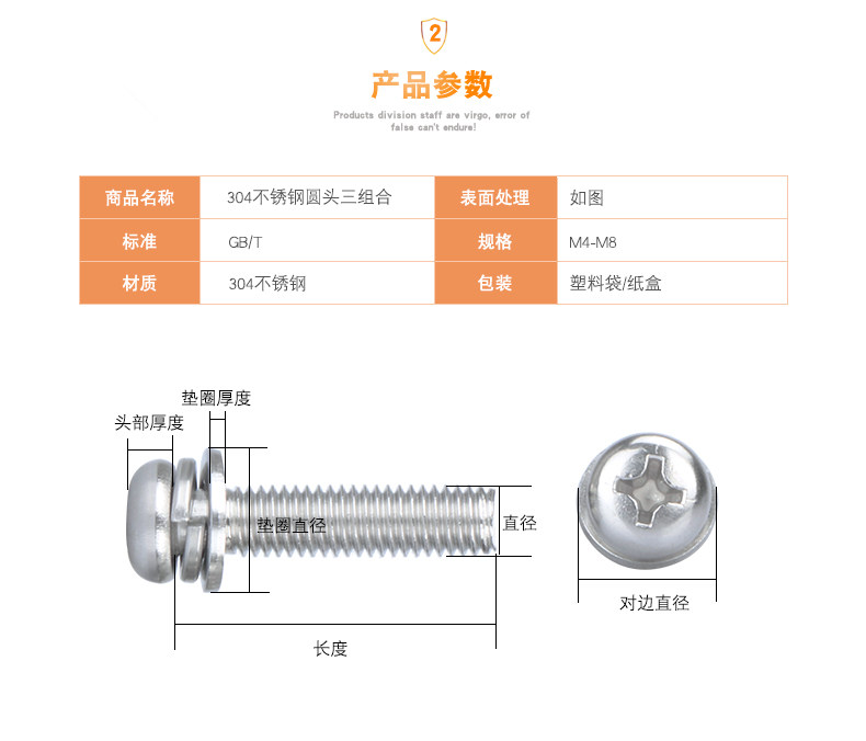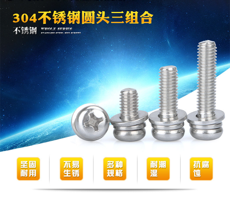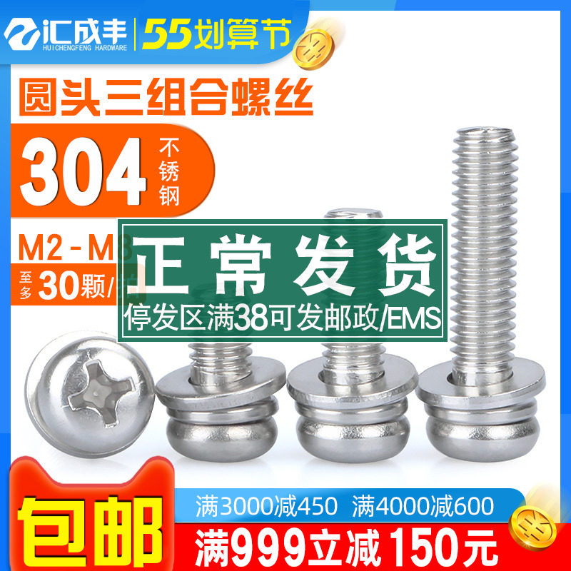 Комбинированный винт 304 нержавеющая сталь Круглая головная площадка Три комбинированные винтовые штырь головка винт м2.5M3M4M5M6M8