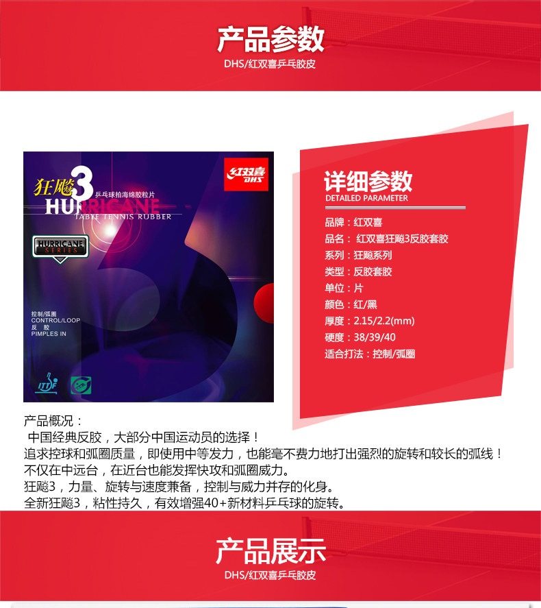 Оригинал Доставка DHS / красный Shuangxi три безумных 3 безумных сумасшедших трех настольных теннис против адгезивного рукава