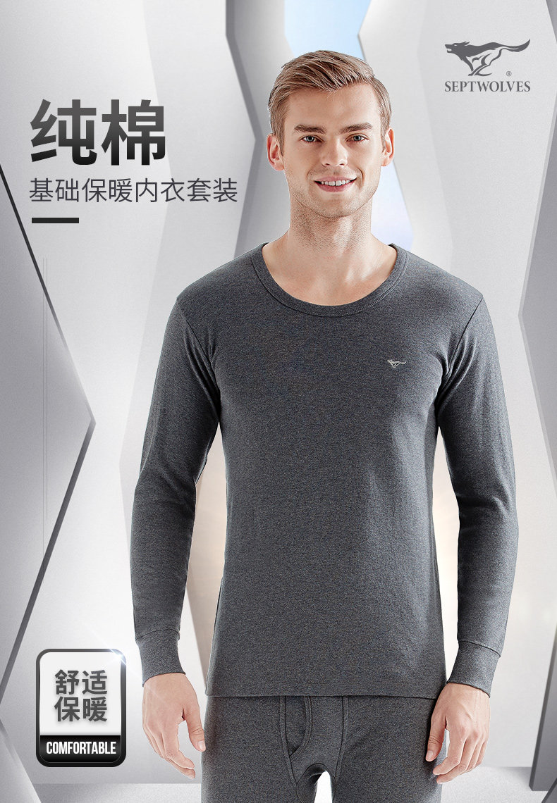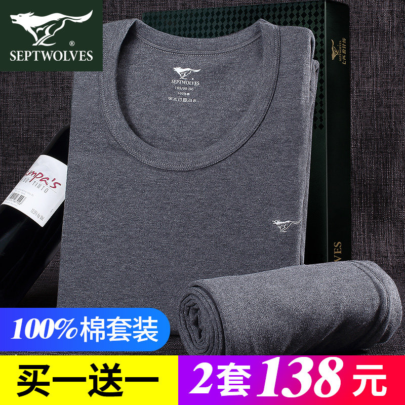 7 Волк мужской удерживающий тепло нижнее белье комплект чистый хлопок Брюки полностью хлопок хлопок Свитер мужской Осенняя одежда зимний Тонкий стиль