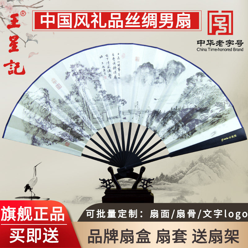 Ван Синцзи флагманский магазин вентилятор китайский стиль древний стиль складной вентилятор мужской Стильный вентилятор из шелка и шелка на заказ летний подарок ремесло вентилятор