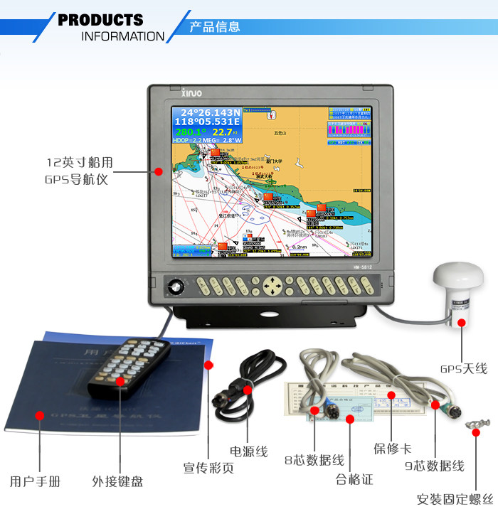 Полностью новый в оригинальной упаковке Строительство дверь новый NOVO HM5812 12,1 дюйма Marine GPS спутниковое навигационное устройство 1512