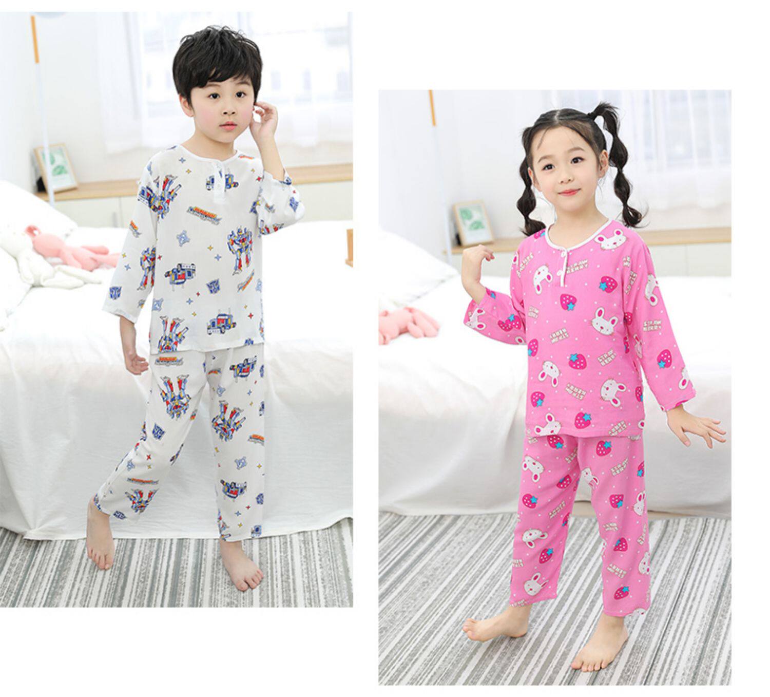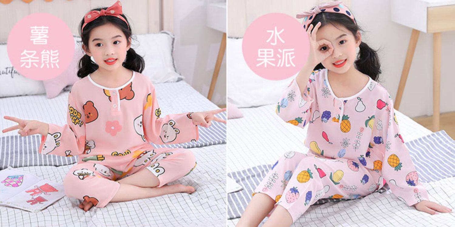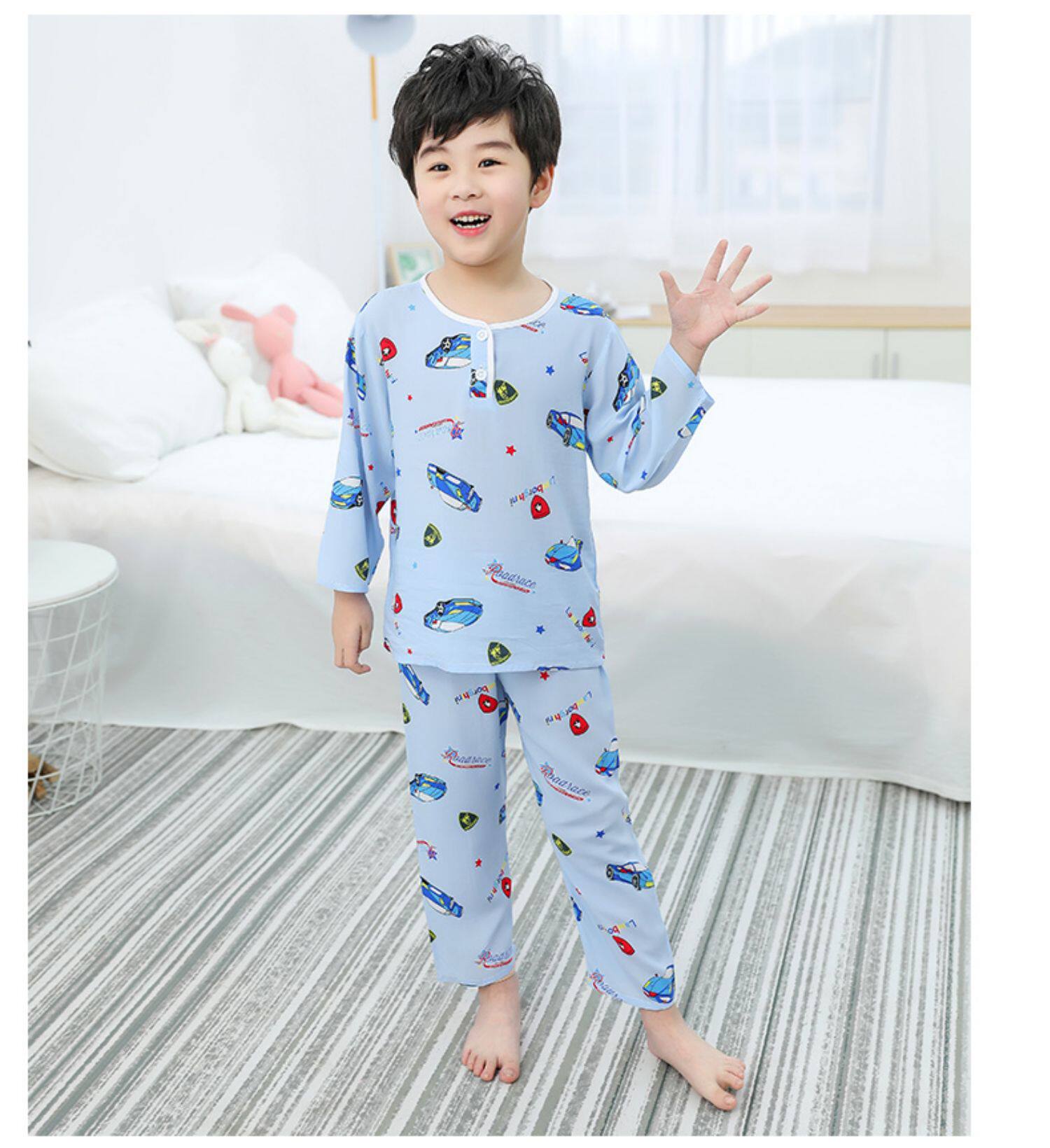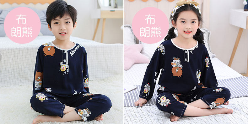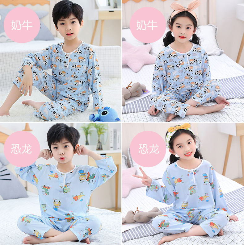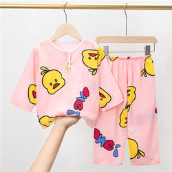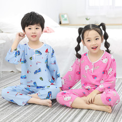 Лето хлопок шелк детские Пижамаское летнее платье мужской ребенок на девочку Хлопковый шелк на мальчика Тонкий стиль Искусственный хлопок Домашняя служба с кондиционером детские