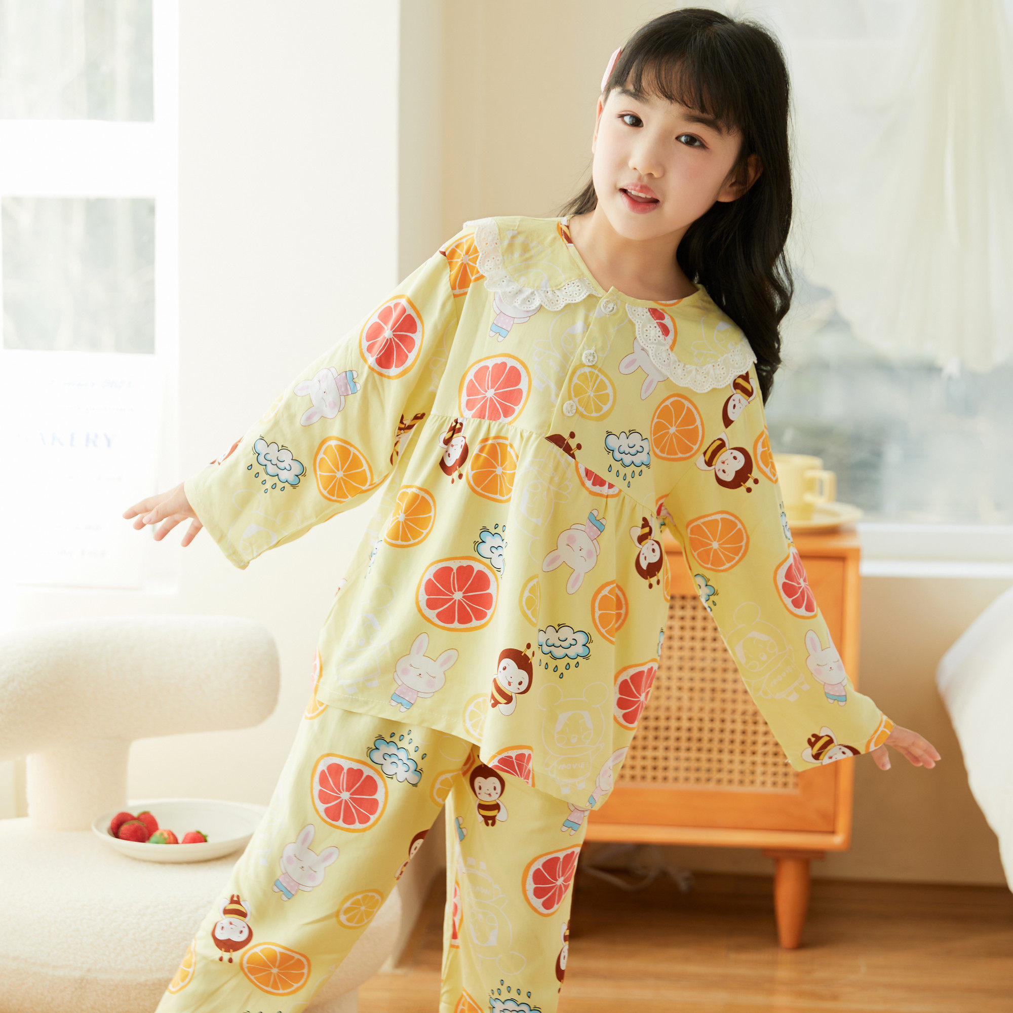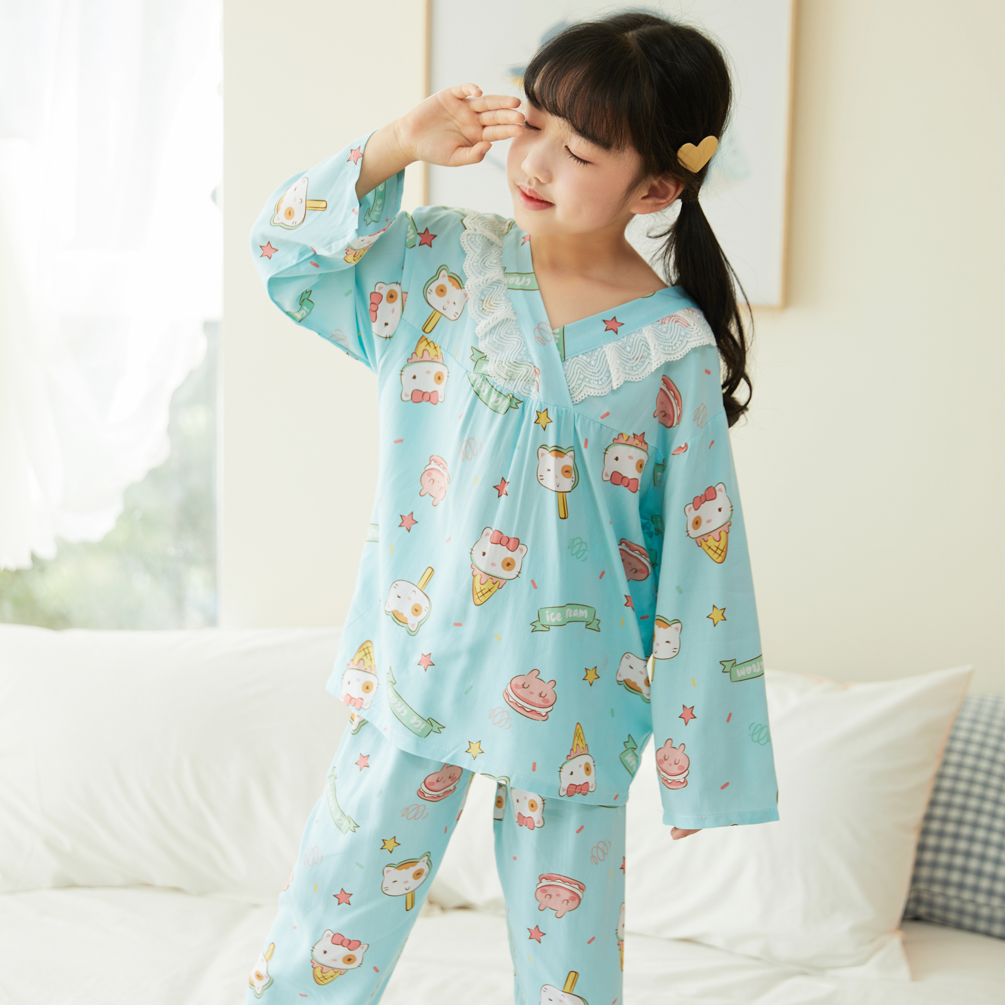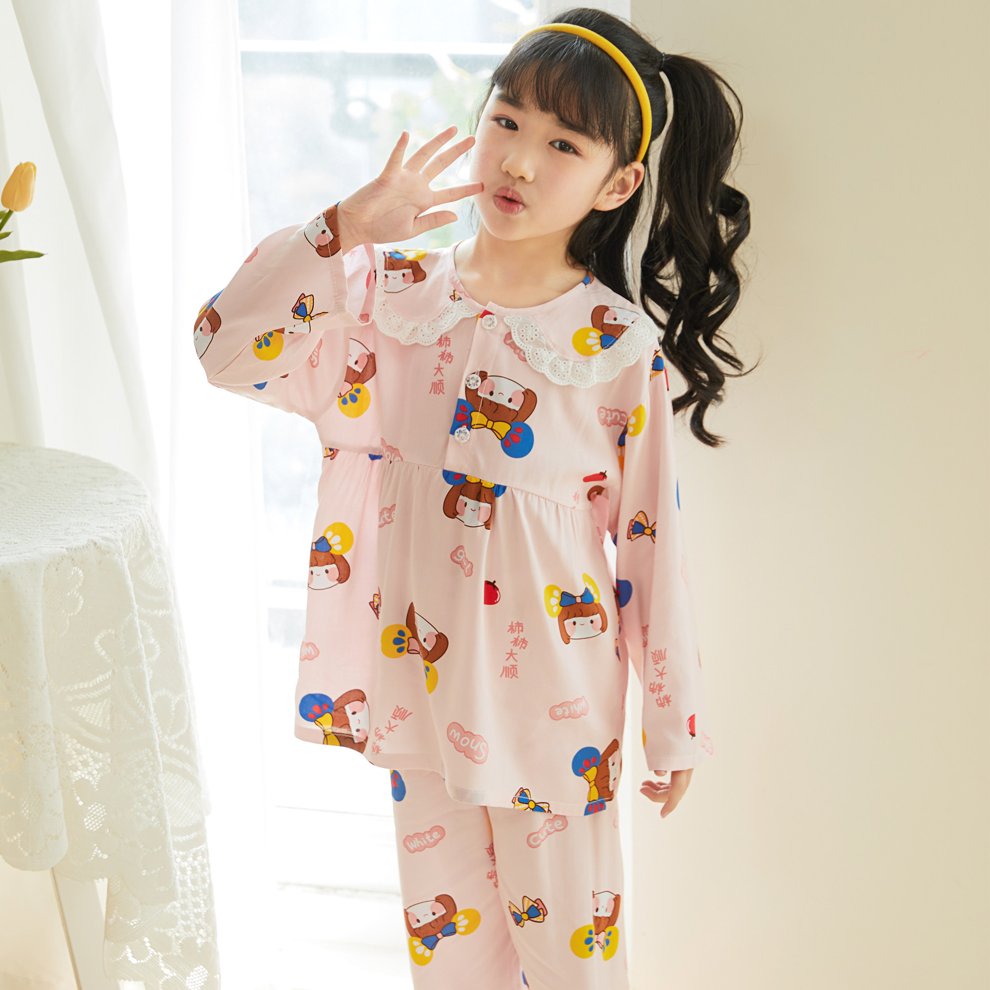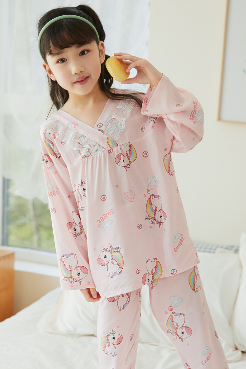Лето хлопок шелк детские Пижамаское летнее платье мужской ребенок на девочку Хлопковый шелк на мальчика Тонкий стиль Искусственный хлопок Домашняя служба с кондиционером детские