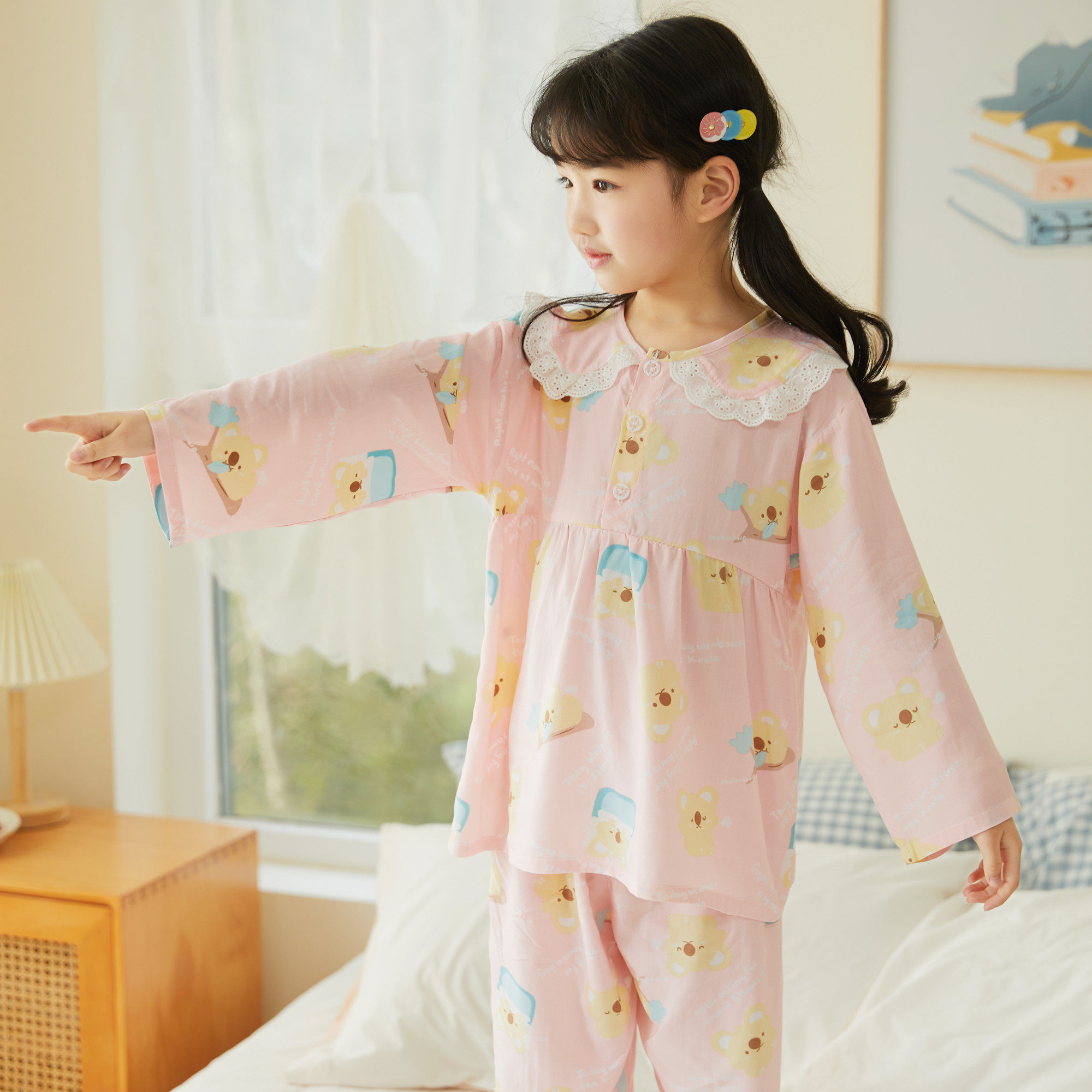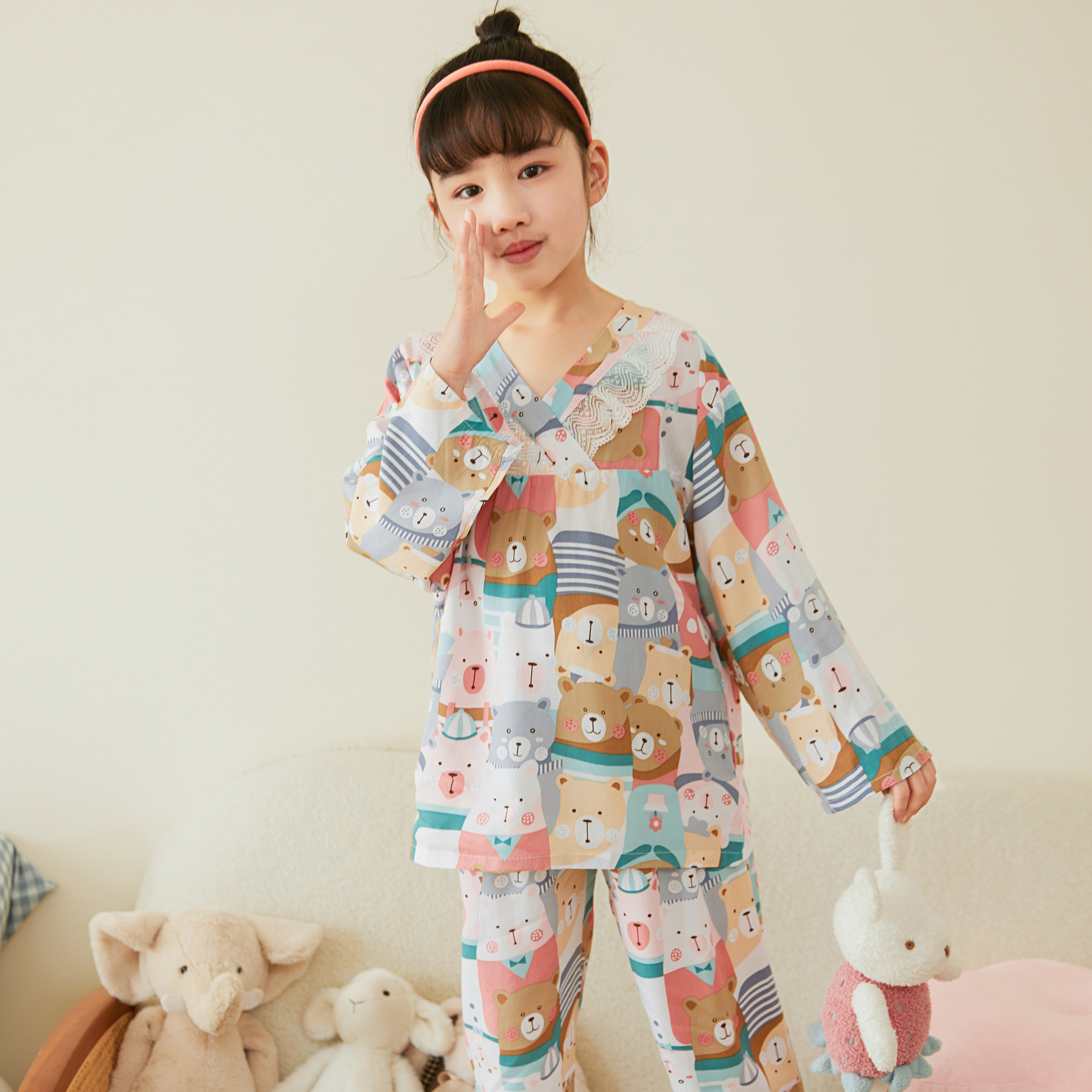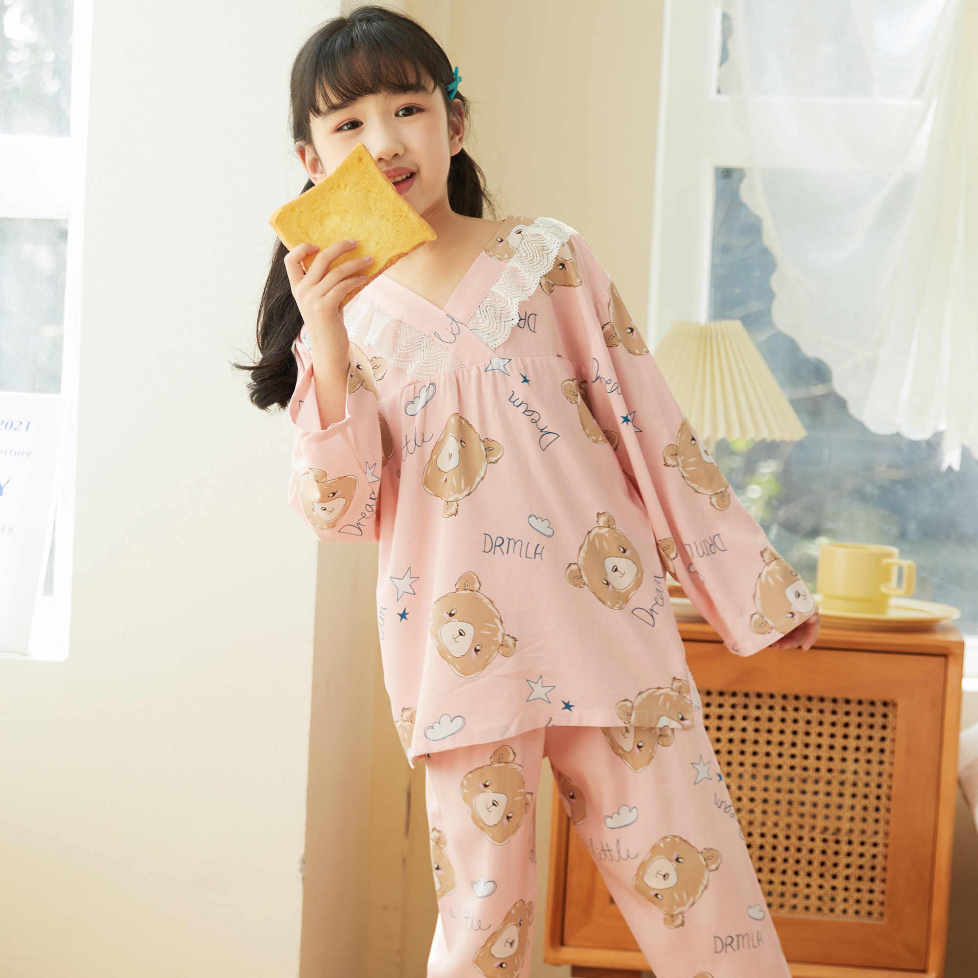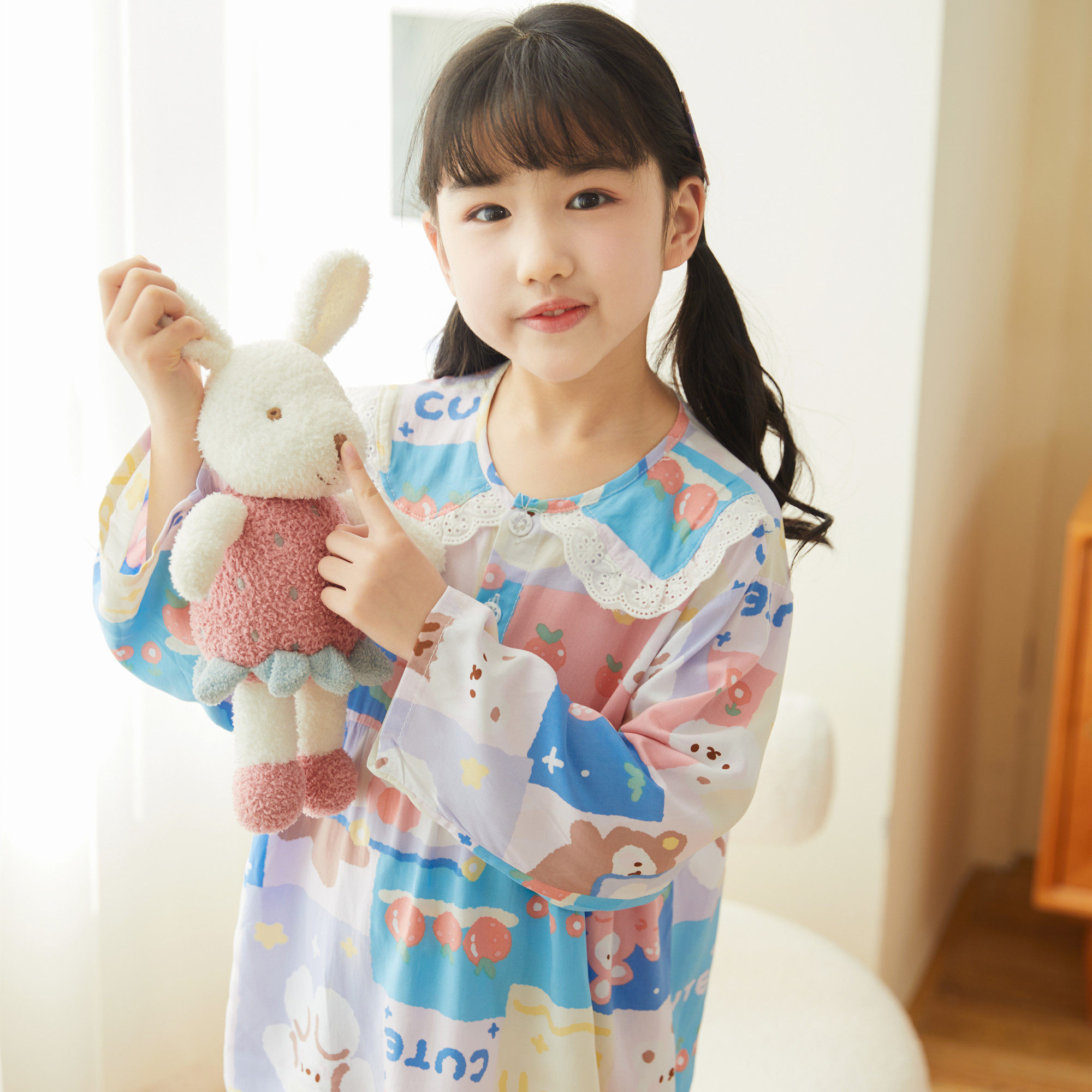 Лето хлопок шелк детские Пижамаское летнее платье мужской ребенок на девочку Хлопковый шелк на мальчика Тонкий стиль Искусственный хлопок Домашняя служба с кондиционером детские