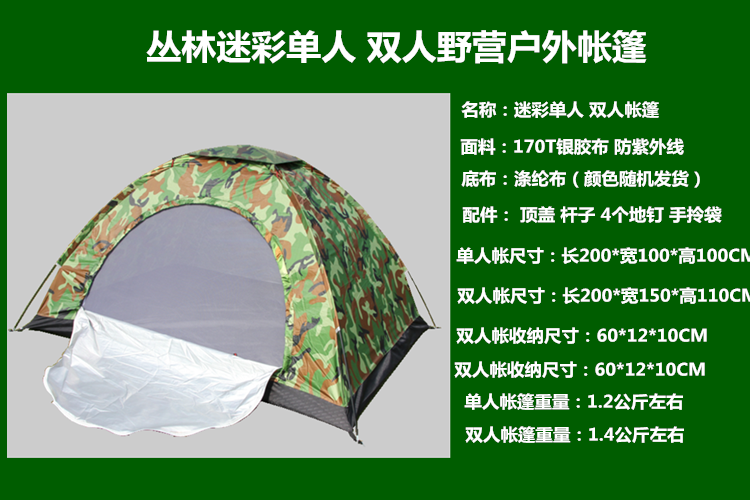 один Палатка народная + влагонепроницаемая подушка + палатка свет = 70 юаней