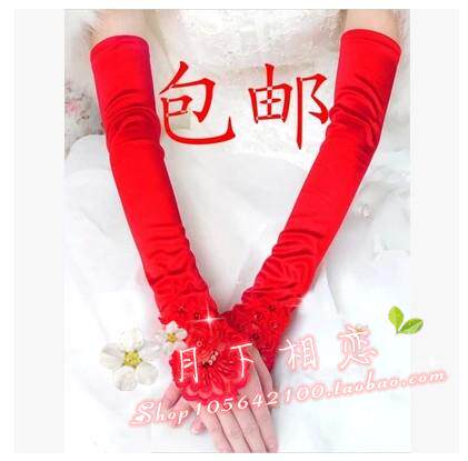 Бесплатная доставка по китаю новый мама перчатки свадебное Свадебное платье перчатки добавлять длинные перчатки без Роса рефляр вышивки перчатки красный белый