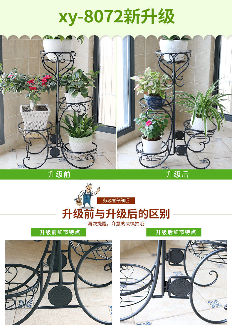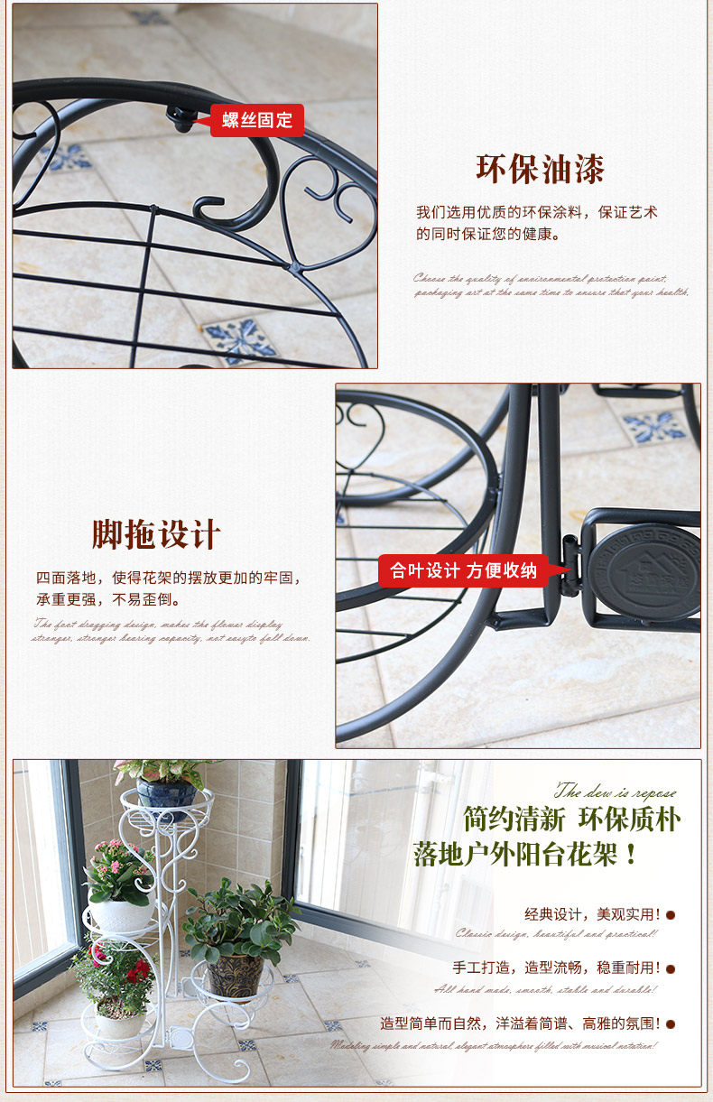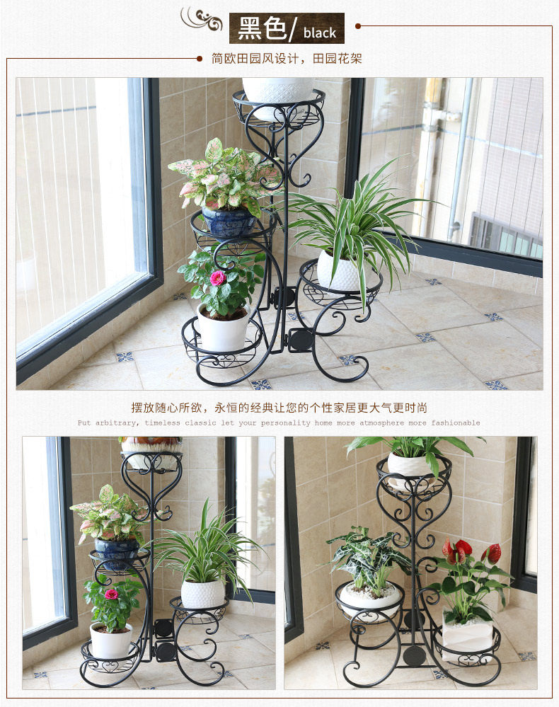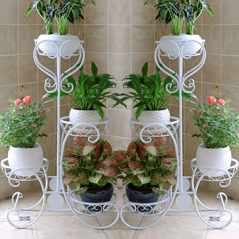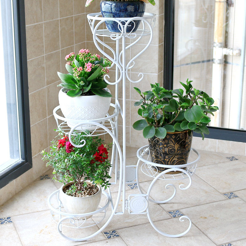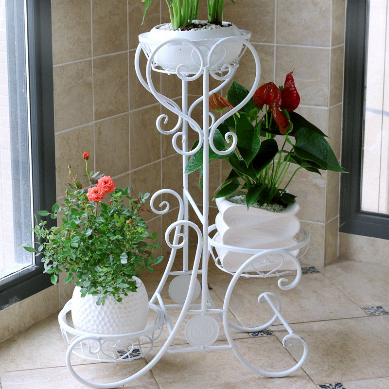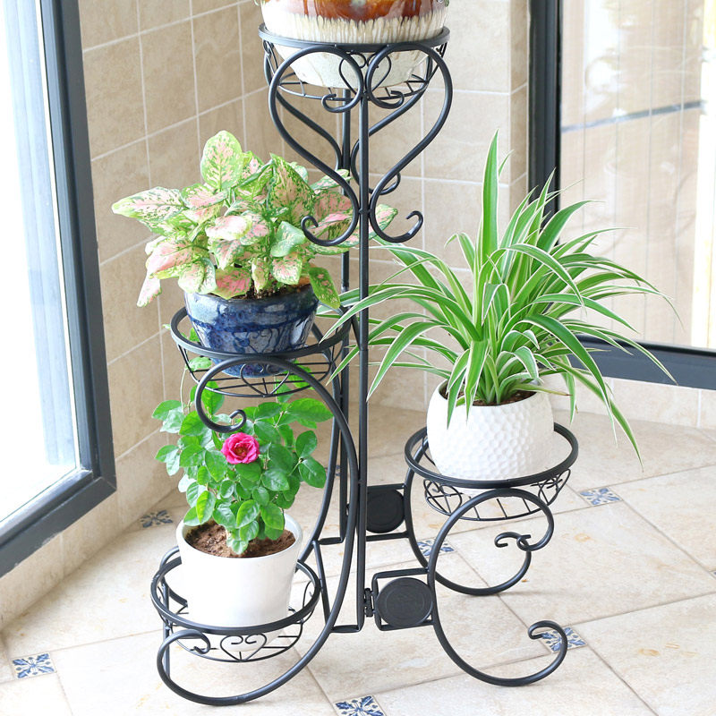 Железное цветочное укрытие балкон горшок с мульти -старией в помещении завода завода посадка европейского трехстороннего шельфа растения