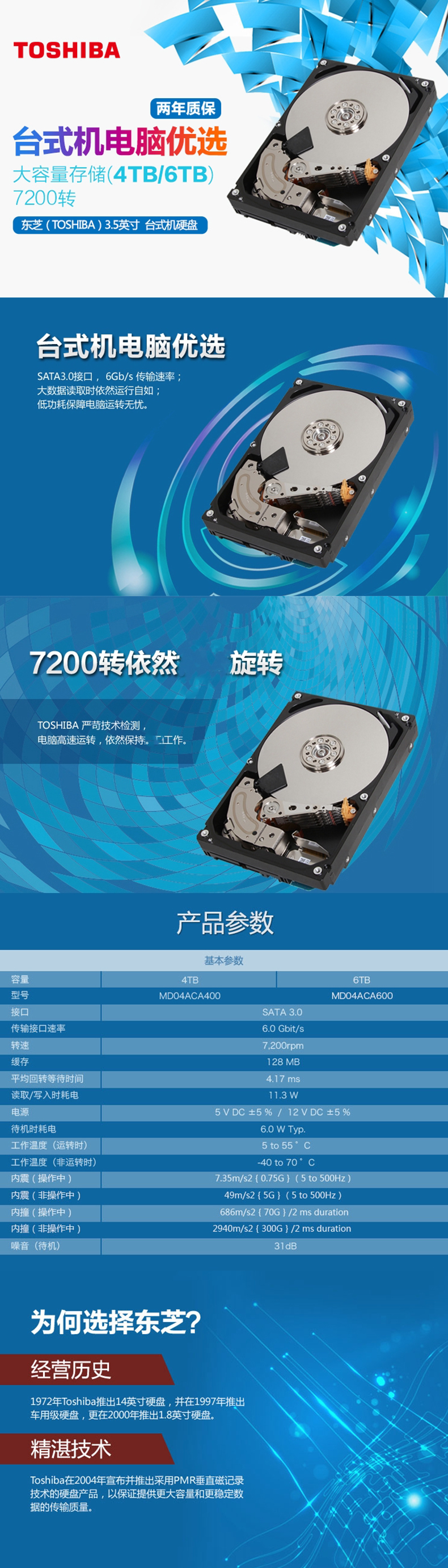 Механический жесткий диск Toshiba 4T 7200 об / мин вертикальный PMR MD04ACA400 может контролировать настольный компьютер 128M 3,5 дюйма 4 ТБ DT02ABA400 P300 4t дополнительно