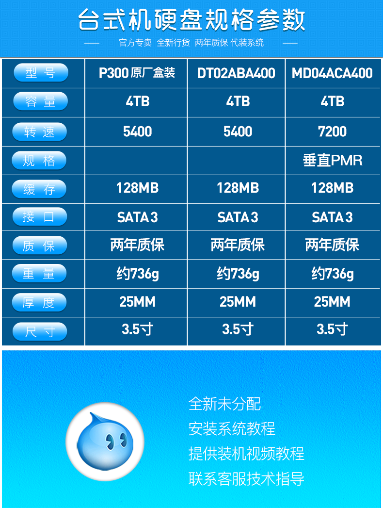 - Кабель SATA "P300 4T 5400 об / мин" + винт + винт + нож один База жесткого диска