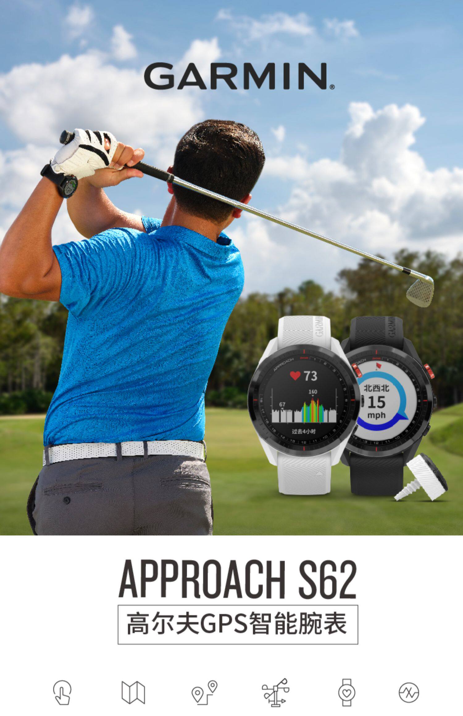 Гармин golf Диапазон измерителей Часы Golfs62 E-Ball GPS высокая Недвижные часы водонепроницаемый