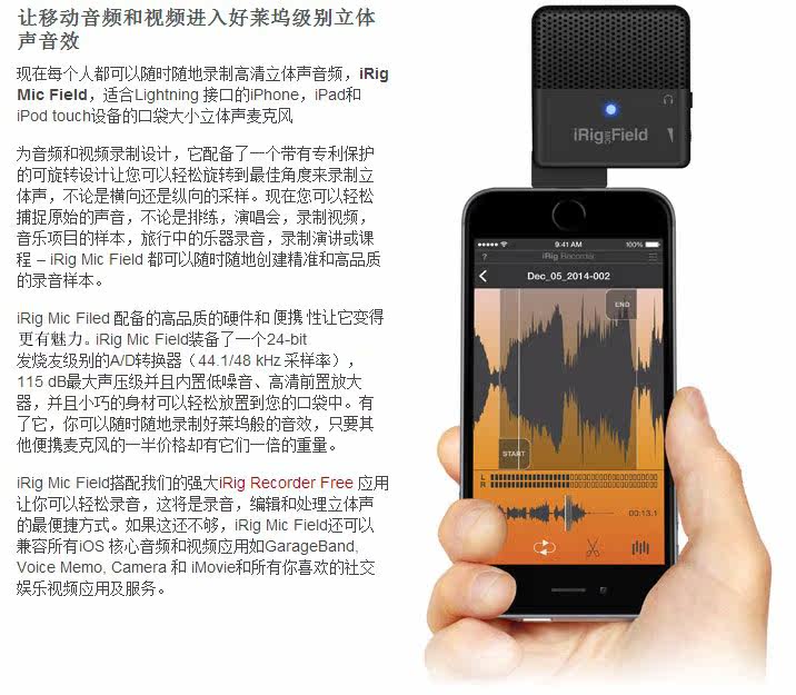IK IRIG MIC поле мобильного устройства связи для Запись интерфейса микрофон